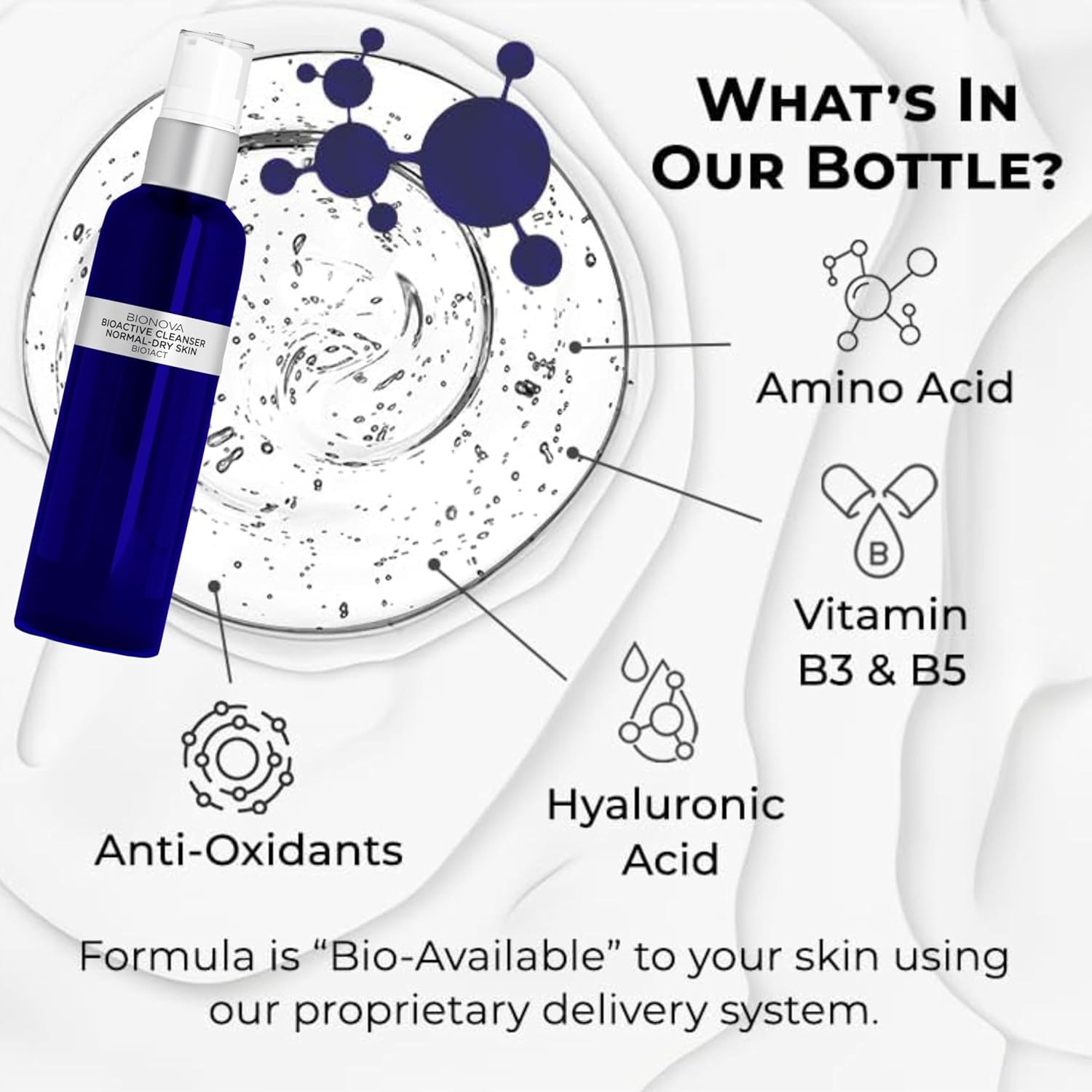 Bioactive Cleanser Normal to Dry Skin - Non-Foaming Facial Cleanser Provides a Gentle Deep Clean Face Wash and Ultra-Hydrating and Moisturizing Treatment (4.5 fl oz)