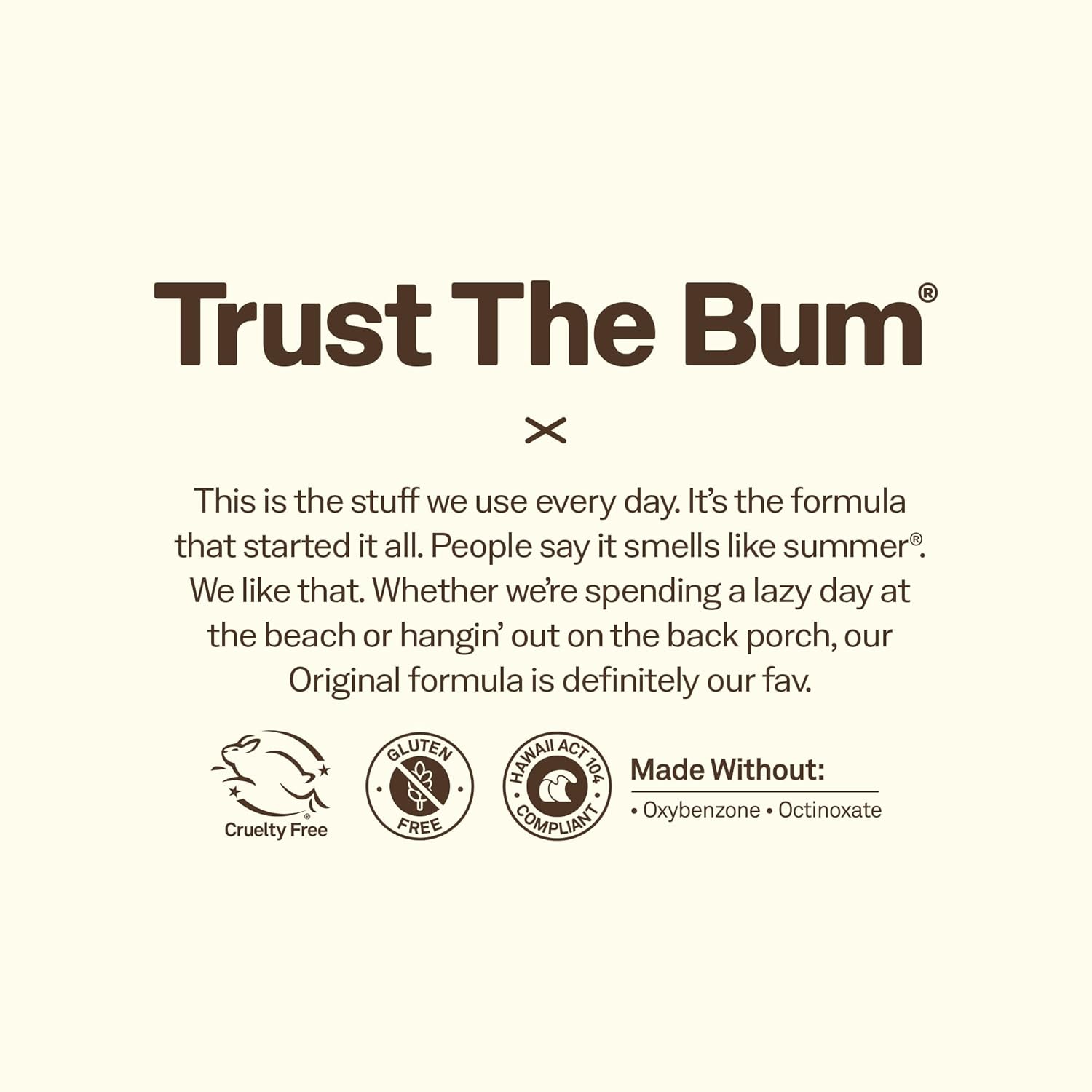 - TRUST THE BUM. What does that mean? It means trust us, the ones who live on the beach and need products that work on the most intense days in the sun. The simple truth is, when you make products to protect the ones you love, you make ‘em better.