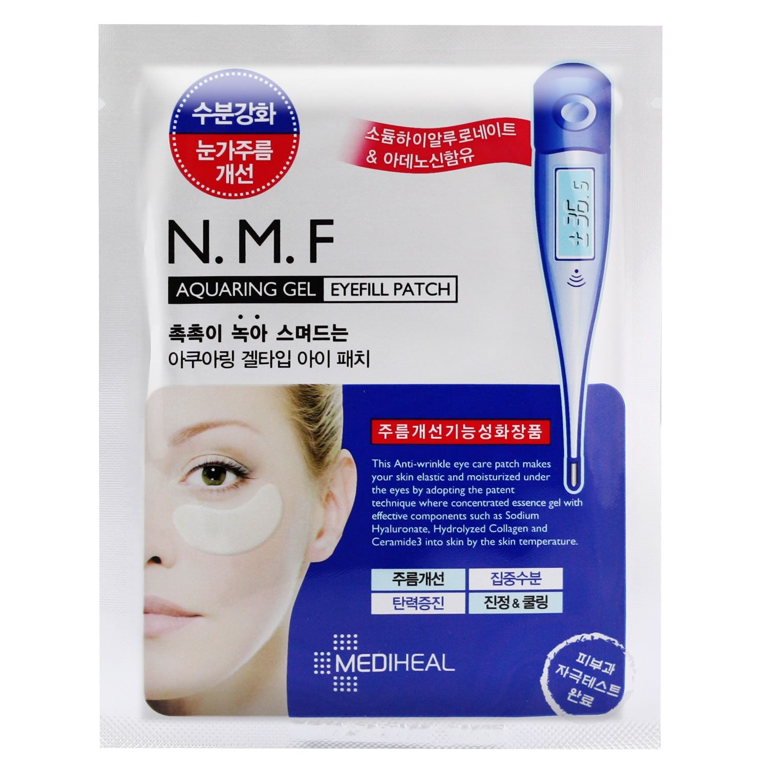 - REDUCES WRINKLES AND DARK CIRCLES: Don’t let your smile fade just because of a wrinkled eye contour or those puffy dark circles. Beauty Clinic Mediheal N.M.F Aquaring Gel Eye Fill Patch Mask hydrates and regenerate skin. It forms a moisture coating film and induces moist energy deep into the skin.