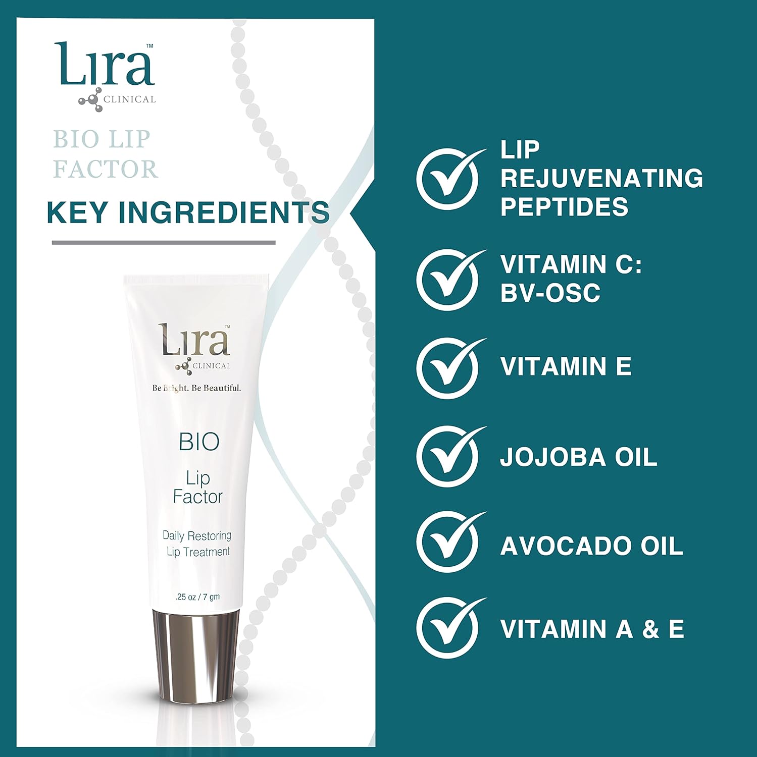Lira Clinical BIO Lip Factor - Lip Balm SPF 15 for Soft, Full, and Supple Lips - Lip Treatment with Peptides, Vitamin C, E, Jojoba Oil, Avocado Oil - Lip Moisturizer for Dry Lips - 0.25 Ounce