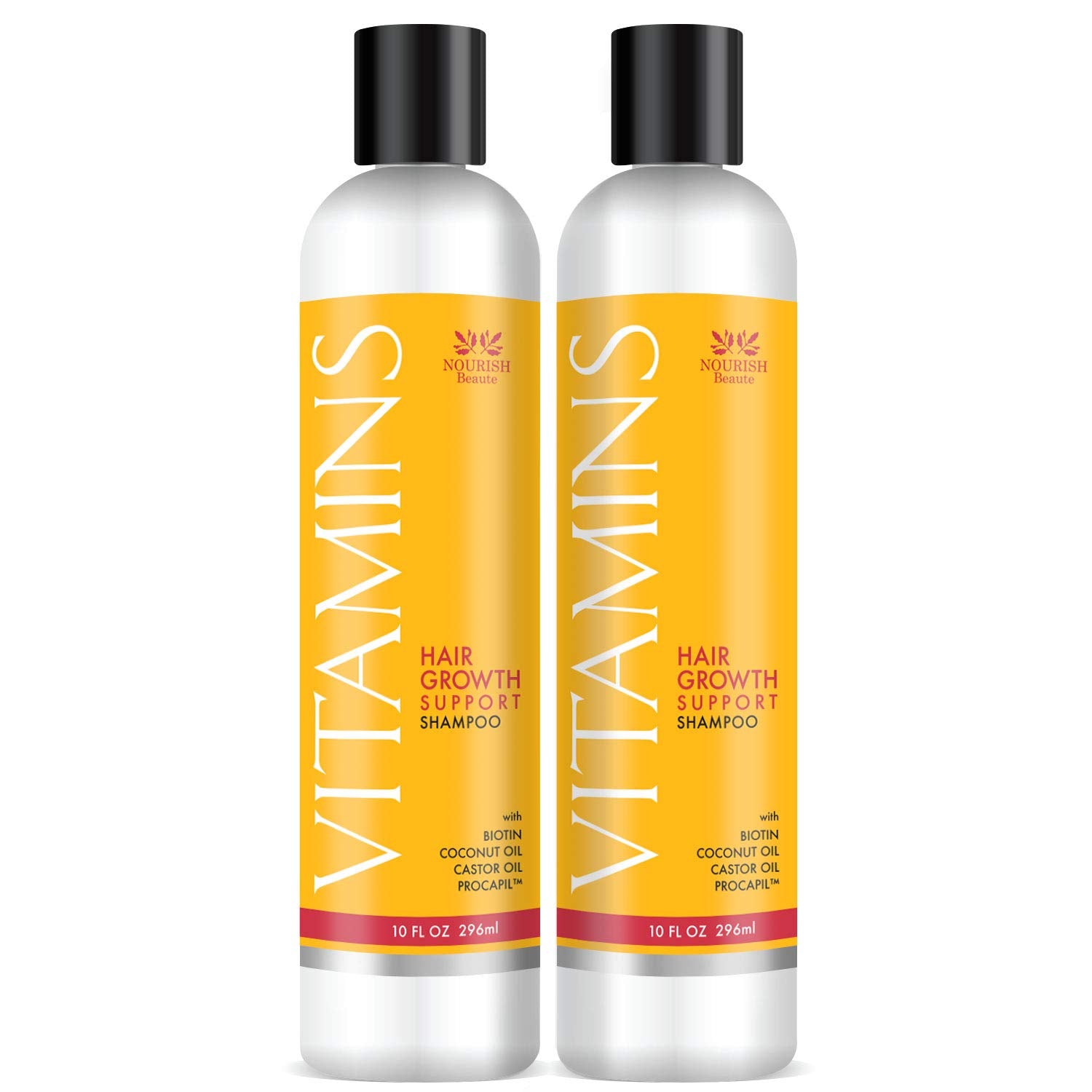 NOURISH Beaute Vitamins Shampoo for Hair Loss that Promotes Hair Regrowth, Volume and Thickening with Biotin, DHT Blockers, Antioxidants, Oils and Extracts, For Men and Women, 10 Oz(Pack of 2)