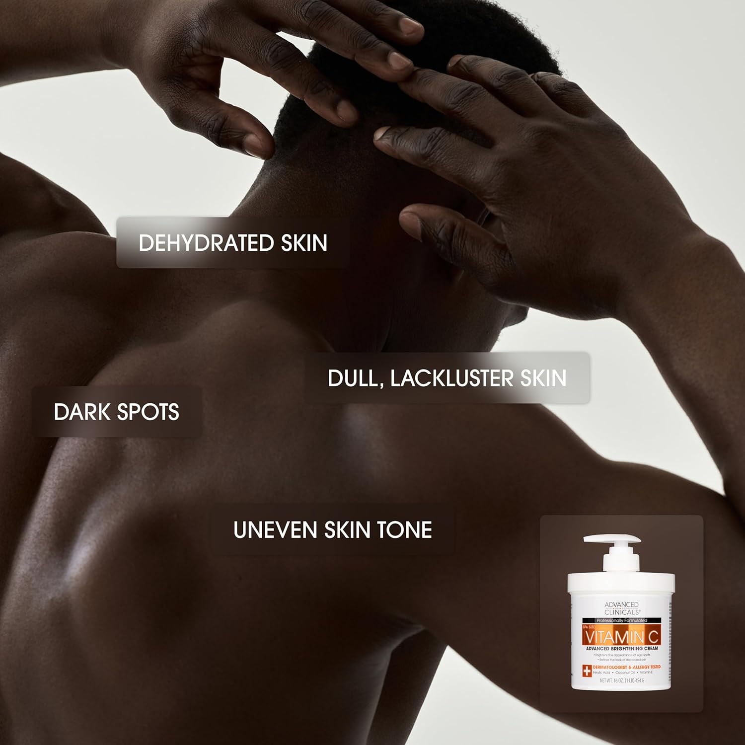Advanced Clinicals Vitamin C Cream Visibly Brightening Body Lotion | Vitamin C Moisturizer Skin Care Body Cream For Women & Men Helps Visibly Improve Look Of Dark Spots & Uneven Skin Tone, 16 Ounce
