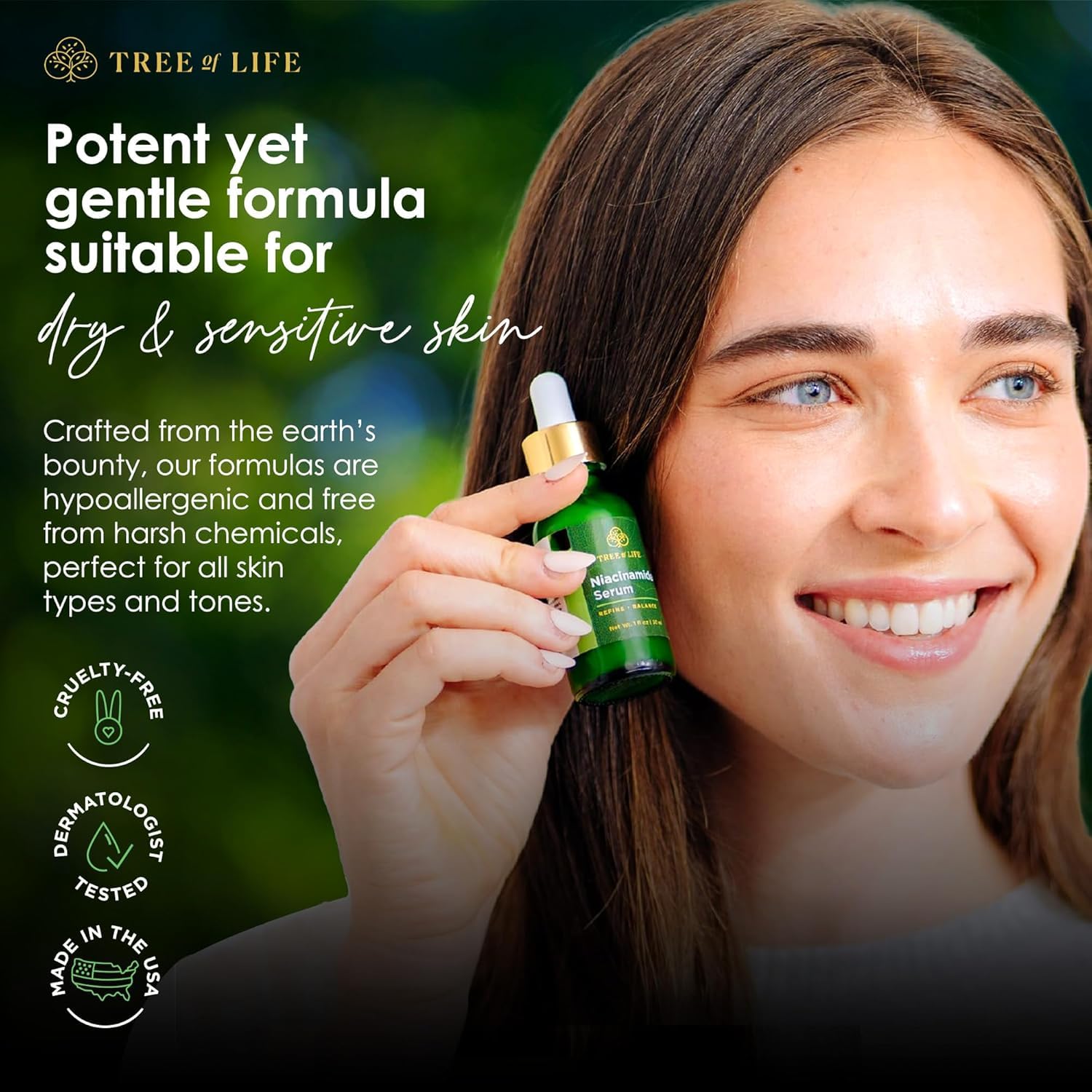 - DERMATOLOGIST-TESTED & CRUELTY-FREE: Packed with thoughtfully-chosen ingredients you can feel good about! Tree of Life's commitment to your skin's health is backed by rigorous dermatologist testing, ensuring top-quality care, while steadfastly maintaining cruelty-free standards.