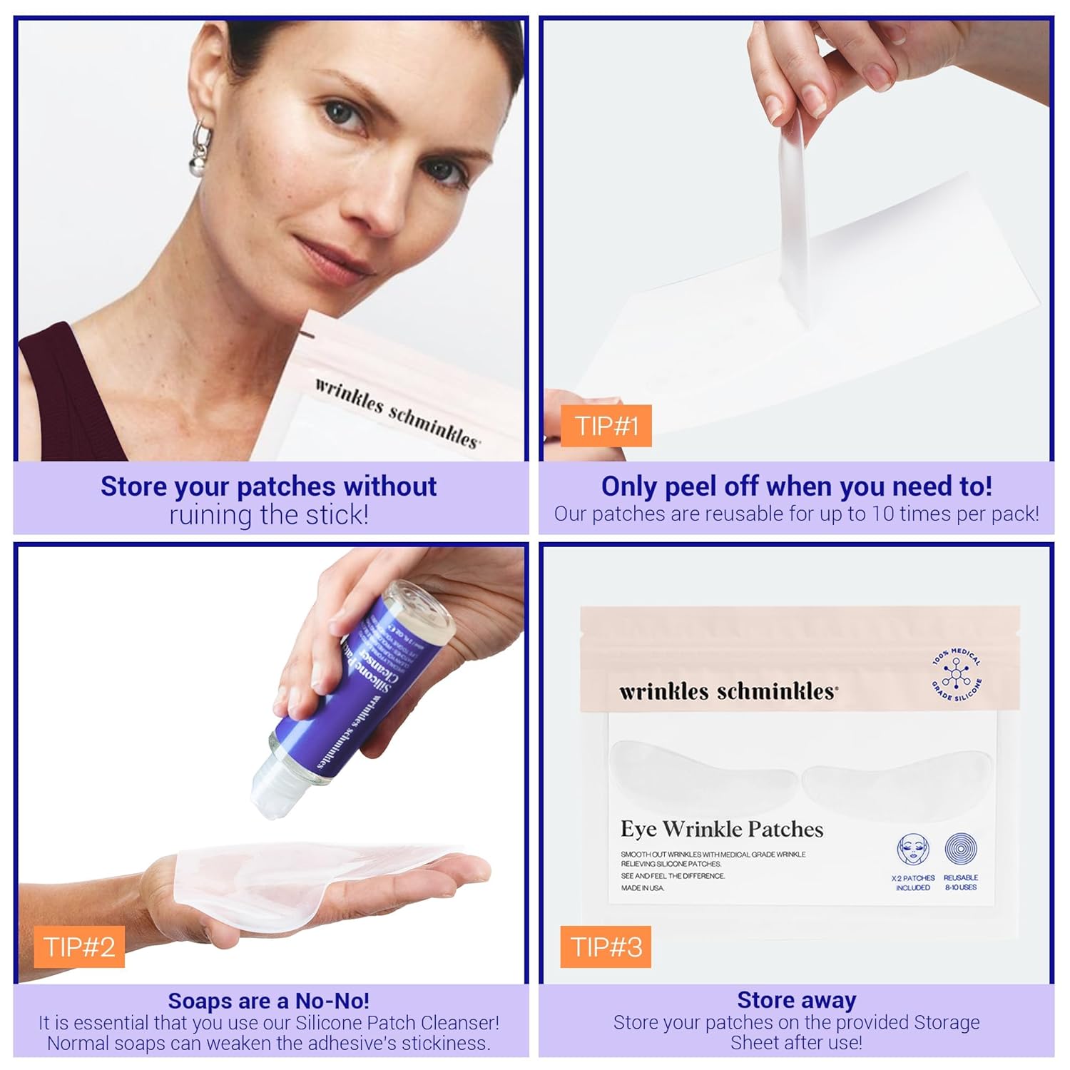 - EASY TO USE: Cleanse & dry skin, keeping it free of ANY skincare. Peel away plastic layer of the Silicone Patch to reveal adhesive. Stick Silicone Patch on target area, adhesive side on skin. Wear while you sleep for best results or 1-2 hours for a boost. After use, gently peel off Patches, sticking them on the enclosed storage sheet.