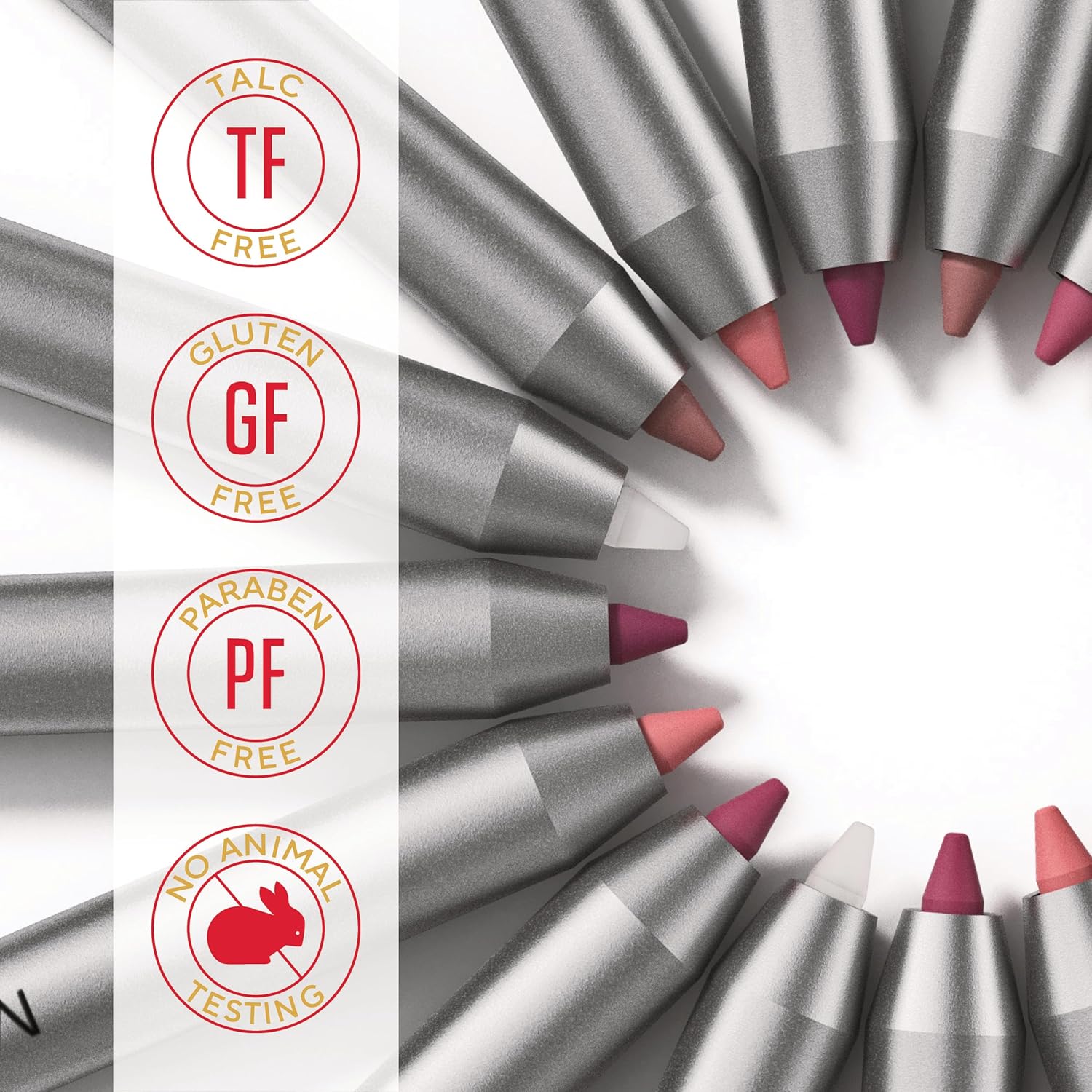 - Guilt-Free Beauty & Moisturizing Lip Color β Like all of Mirabella's Makeup Products, our lip definer is crafted from paraben-free, gluten-free, and cruelty-free ingredients. Our creamy lip liner is enriched with antioxidants like Vitamin C for brightening, Vitamin E for deep hydration, and Dimethicone for a smoothing finish as it help nourish as it defines