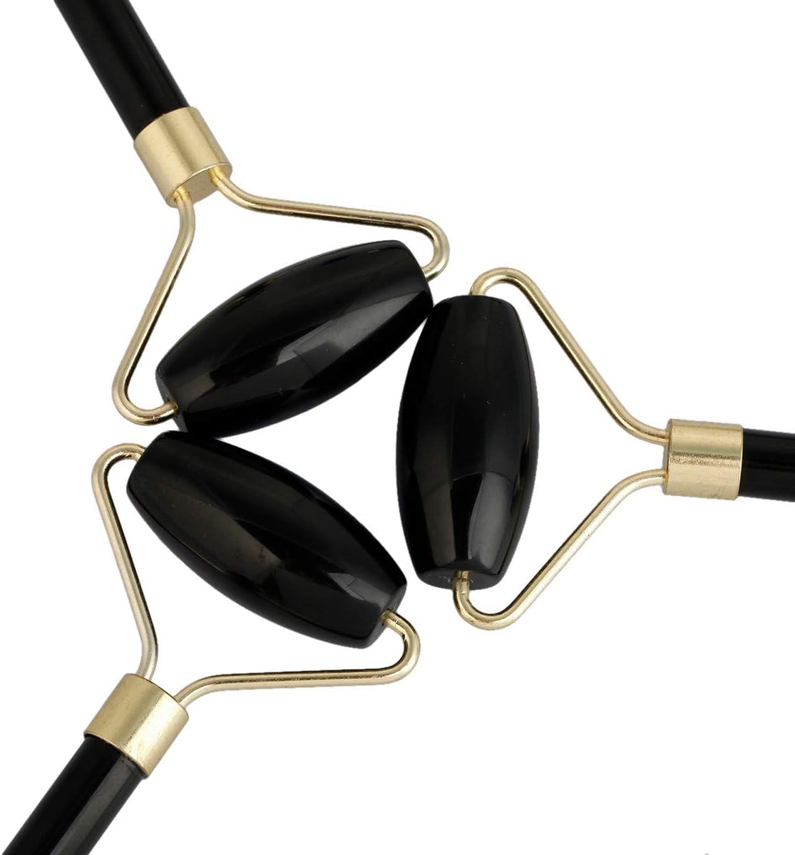 Rockcloud Natural Crystal Stone Roller Massager Double Neck Face & Neck Massage Therapy Anti-Aging Wrinkle Healing Slimming Skincare Tool,Black Obsidian