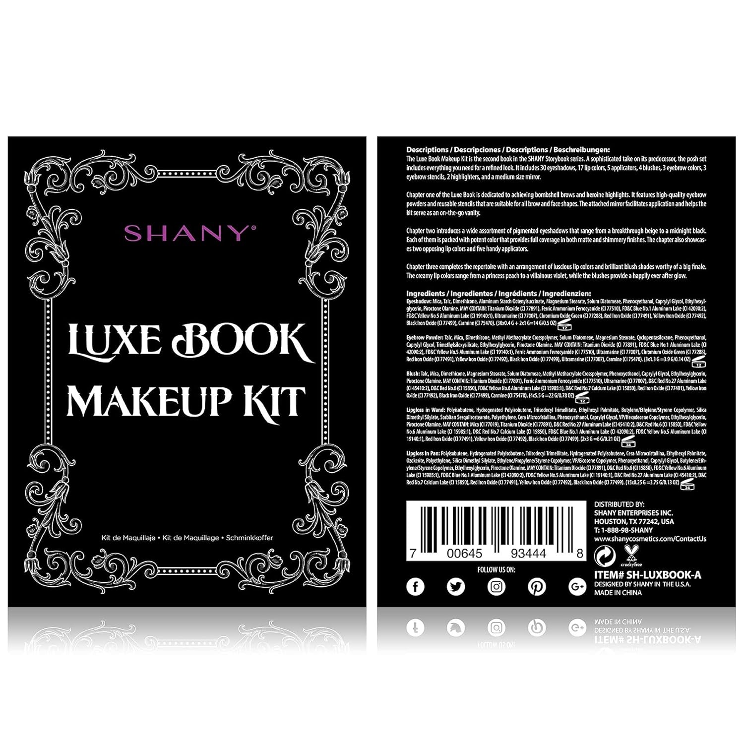 - PREMIUM QUALITY AND DES: The Luxe Book Makeup Kit is the second book in the SHANY Storybook series. A sophisticated take on its predecessor, the posh makeup set includes everything you need for a refined look. Sophisticated design and glamorous packaging