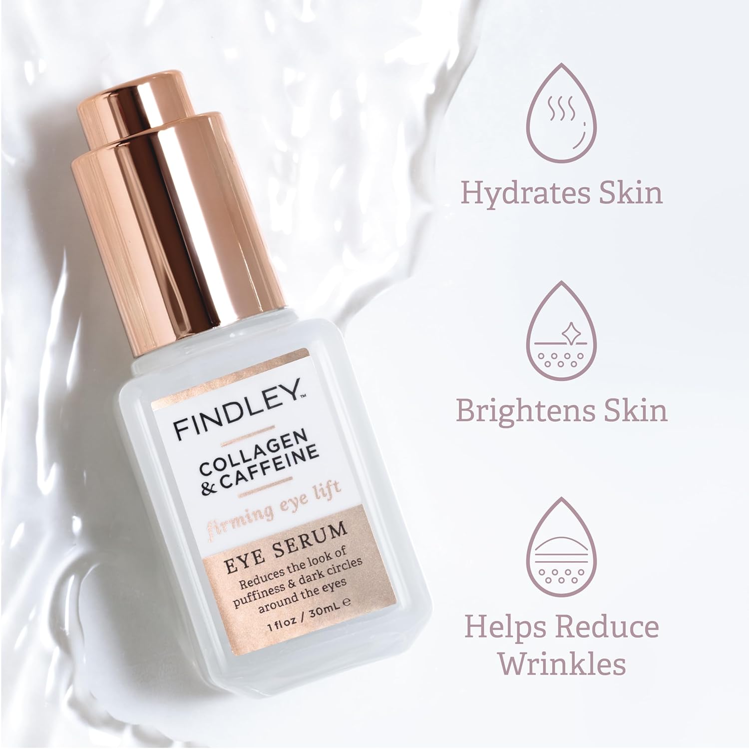 - FINDLEY FIRMING EYE LIFT SERUM WITH COLLAGEN & CAFFEINE (1 fl oz): Reduces the look of puffiness and dark circles around the eyes, providing a more youthful and energized appearance.