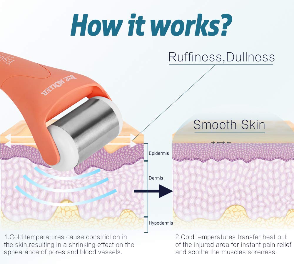 ESARORA Ice Roller, Ice Roller for Face & Eye, Puffiness, Migraine, Pain Relief and Minor Injury, Skin Care Products with 2 Roller (1 Plastic Roller & 1 Stainless Steel Roller)