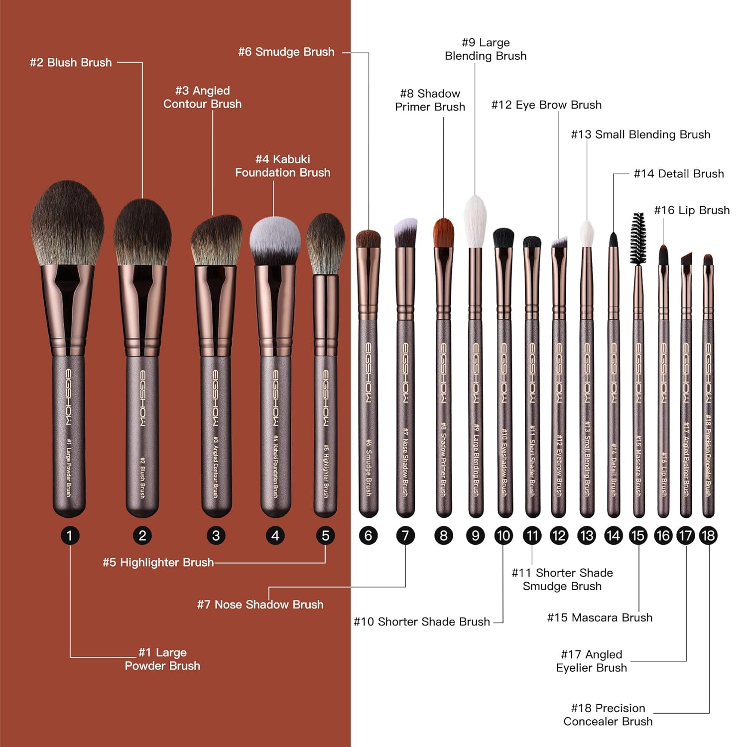 Professional Makeup Brush Set, Eigshow Makeup Brushes Perfect for Foundation Face Powder Blending Blush Bronzer Eyeliner Eye Shadow Brows with Case, Best Gift for Women, Travel Kit(PRO 18pcs Coffee)