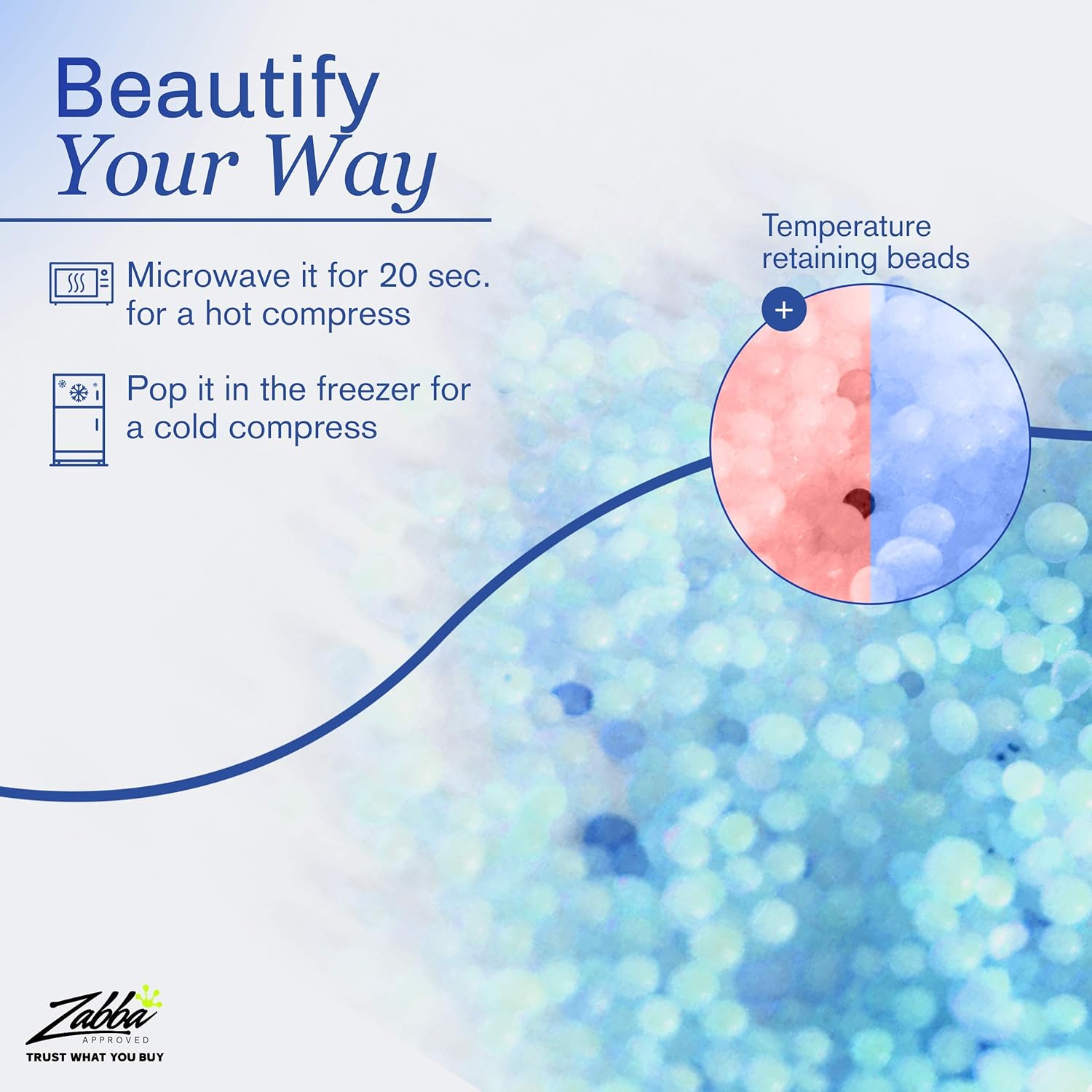 - Relax: Our cold face mask also doubles as a heating pad - great to help reduce headaches, swelling, and tired eyes. Just pop it in the microwave for a couple of seconds and get ready to relax.
