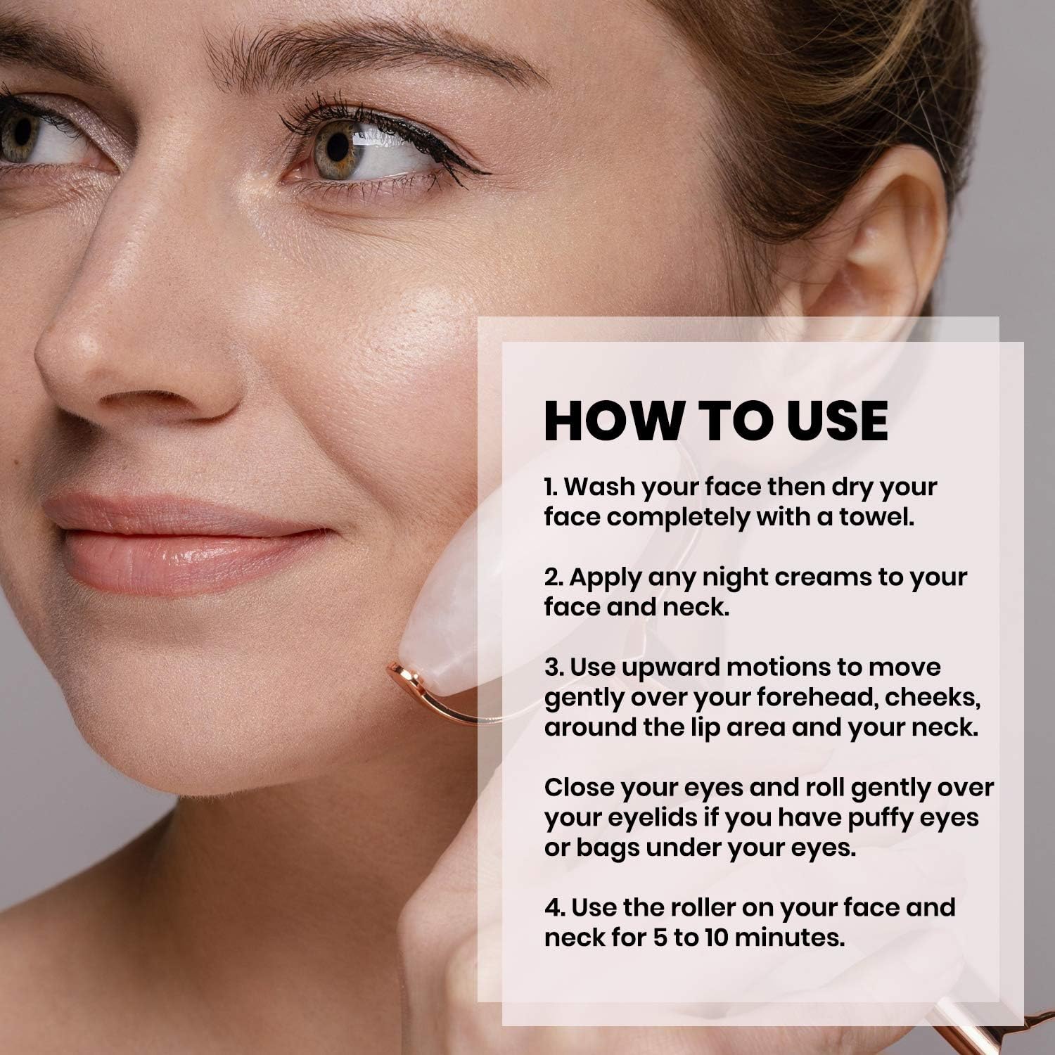 - 2-in-1 Skincare Set – Includes a facial roller for gentle massage and a Gua Sha board for deeper contouring, improving skin elasticity and reducing the appearance of fine lines.