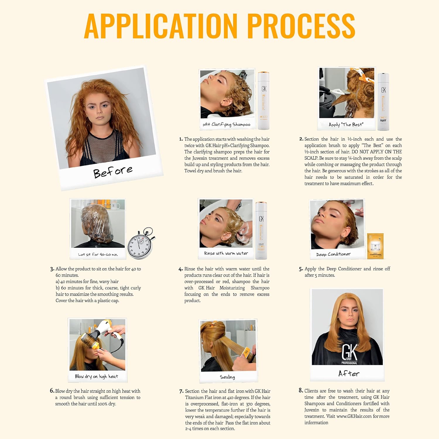 • NO WAITING TIME TO WASH AS NORMAL: There is no wait days after the application to be allowed to wash your hair again. This GK Hair Keratin treatment The Best kit also known as Brazilian keratin treatment comes with 100ml/3.4oz Ph+ Clarifying shampoo, GK Hair The Best Keratin Treatment, GK Hair Moisturizing Shampoo, GK Hair Moisturizing Conditioner and Deep Conditioner 20ml sachet Stop buying Frizz products that work for one day.