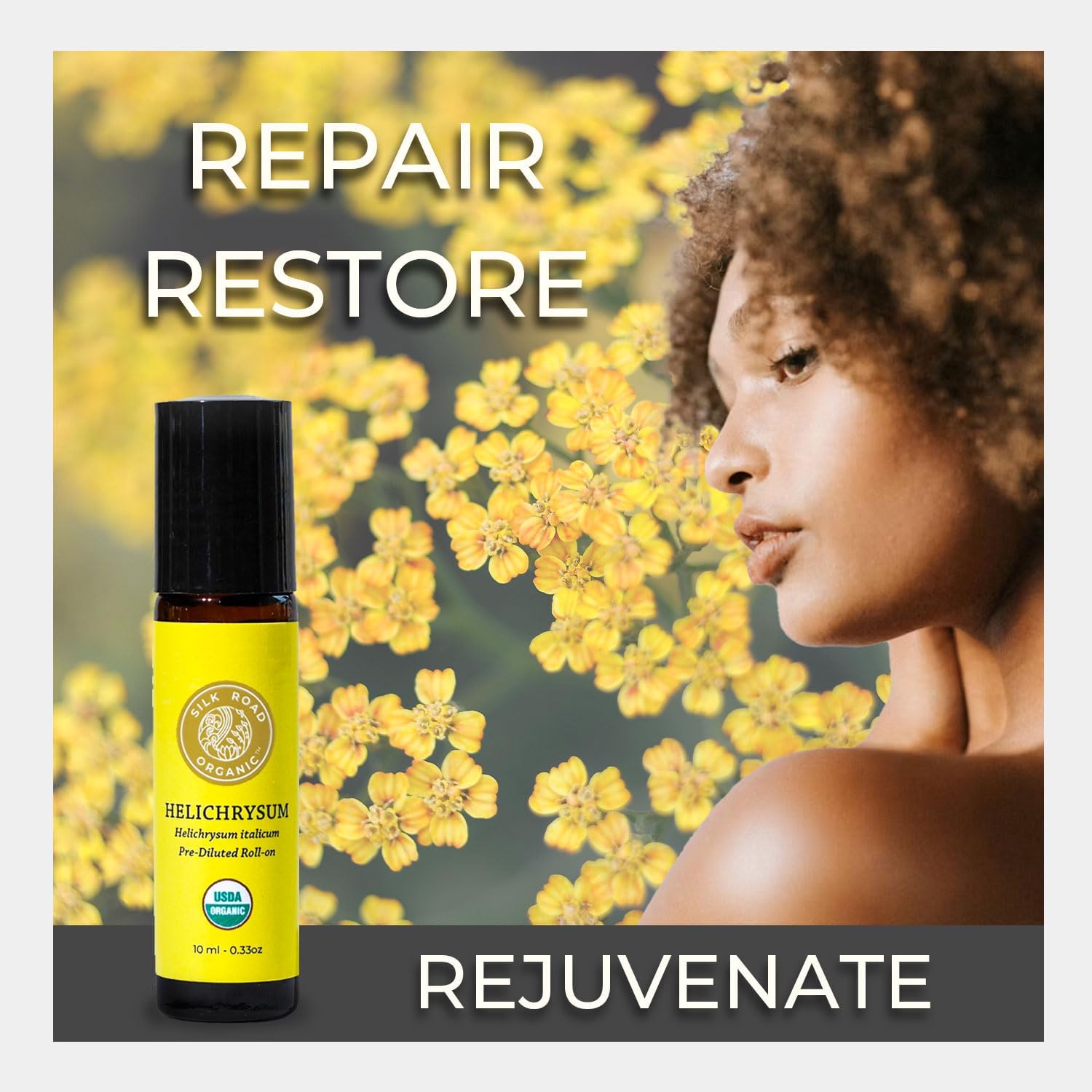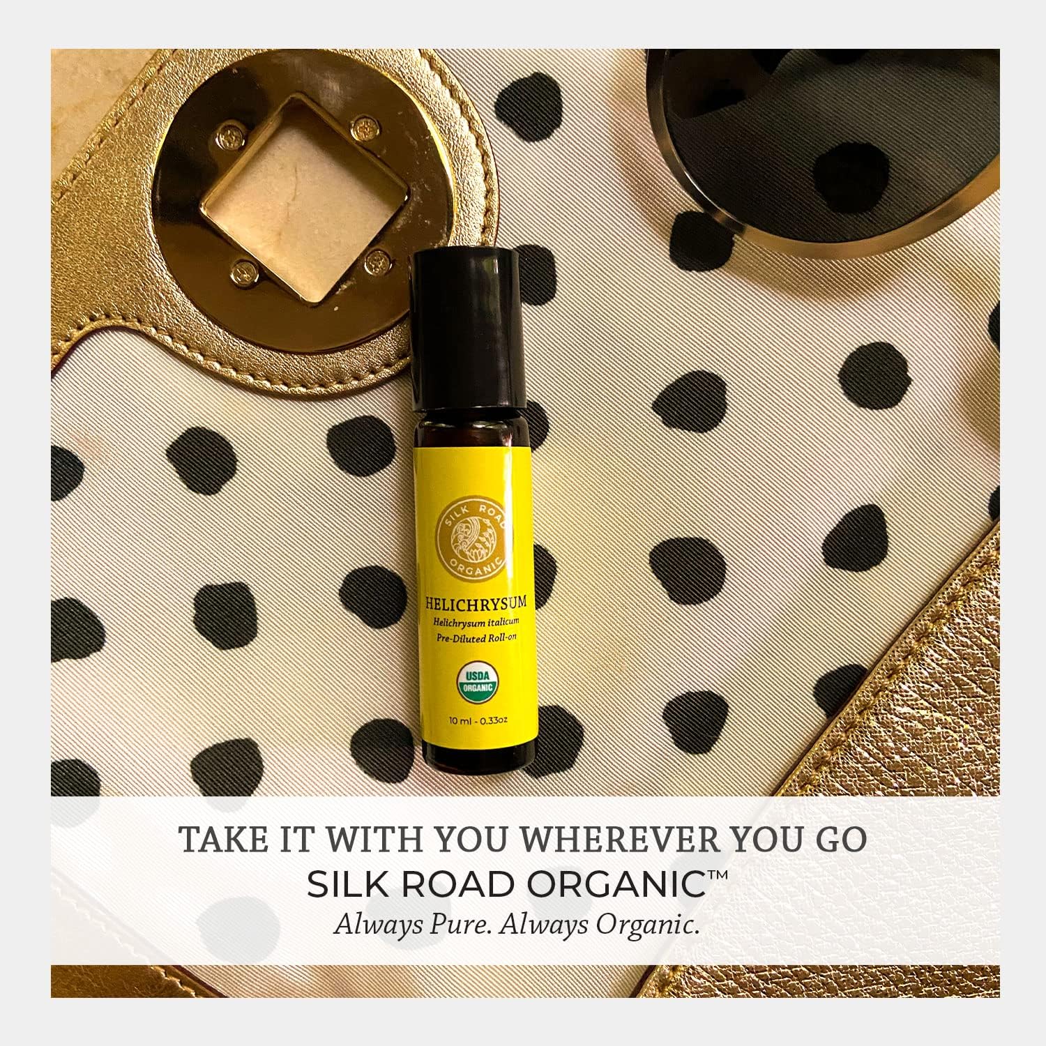 Silk Road Organic Helichrysum Italicum Essential Oil Roll On, 100% Pure USDA Certified Aromatherapy for Skin Vitality & Anti-Aging - 10 ml Roller - Always Pure, Always Organic