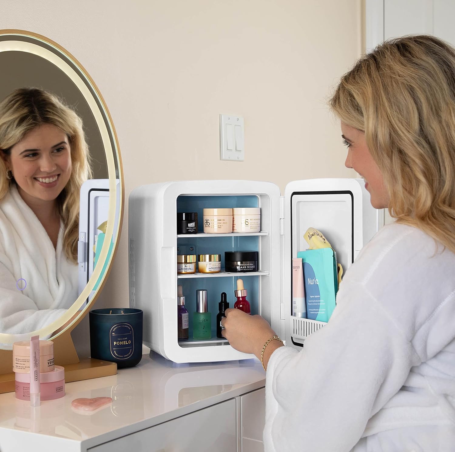 Cooluli 10L Mini Fridge for Bedroom - Car, Office Desk & College Dorm Room 12v Portable Cooler Warmer Food, Drinks, Skincare, Beauty Makeup AC/DC Small Refrigerator with Glass Front, 110 Volts, White