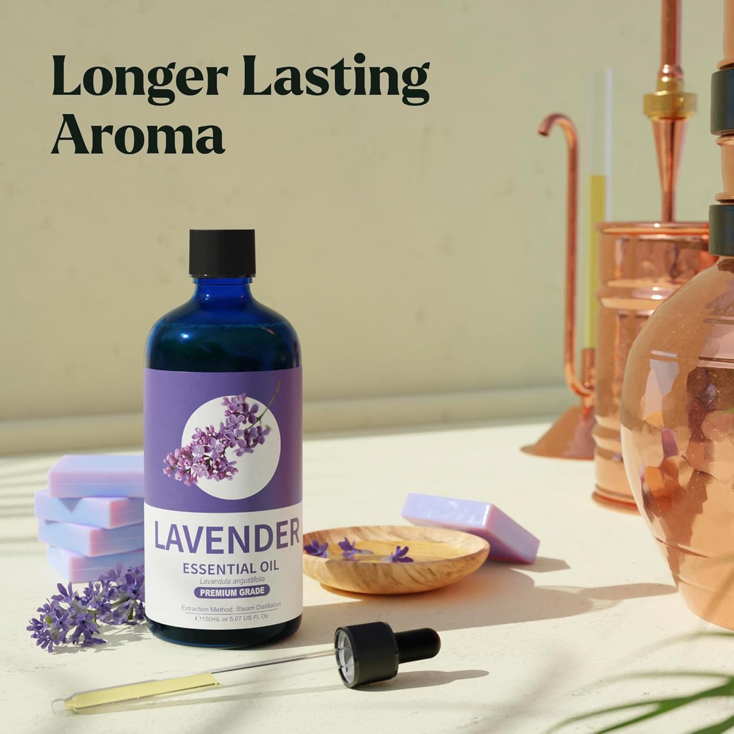 - Soothing Lavender essential oil: Drift off into relaxation with our lavender oil. It’s pure & ideal for calming blends, candle making and diffusers.