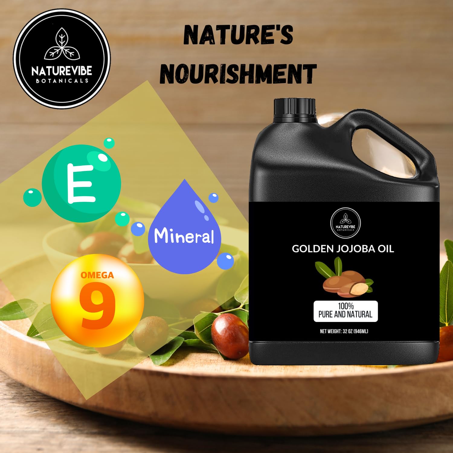Naturevibe Botanicals Golden Jojoba Oil 32 oz – 100% Pure, Cold-Pressed Moisturizer for Skin & Hair | Antioxidant-Rich, Non-Greasy, Carrier Oil & Daily Hydration