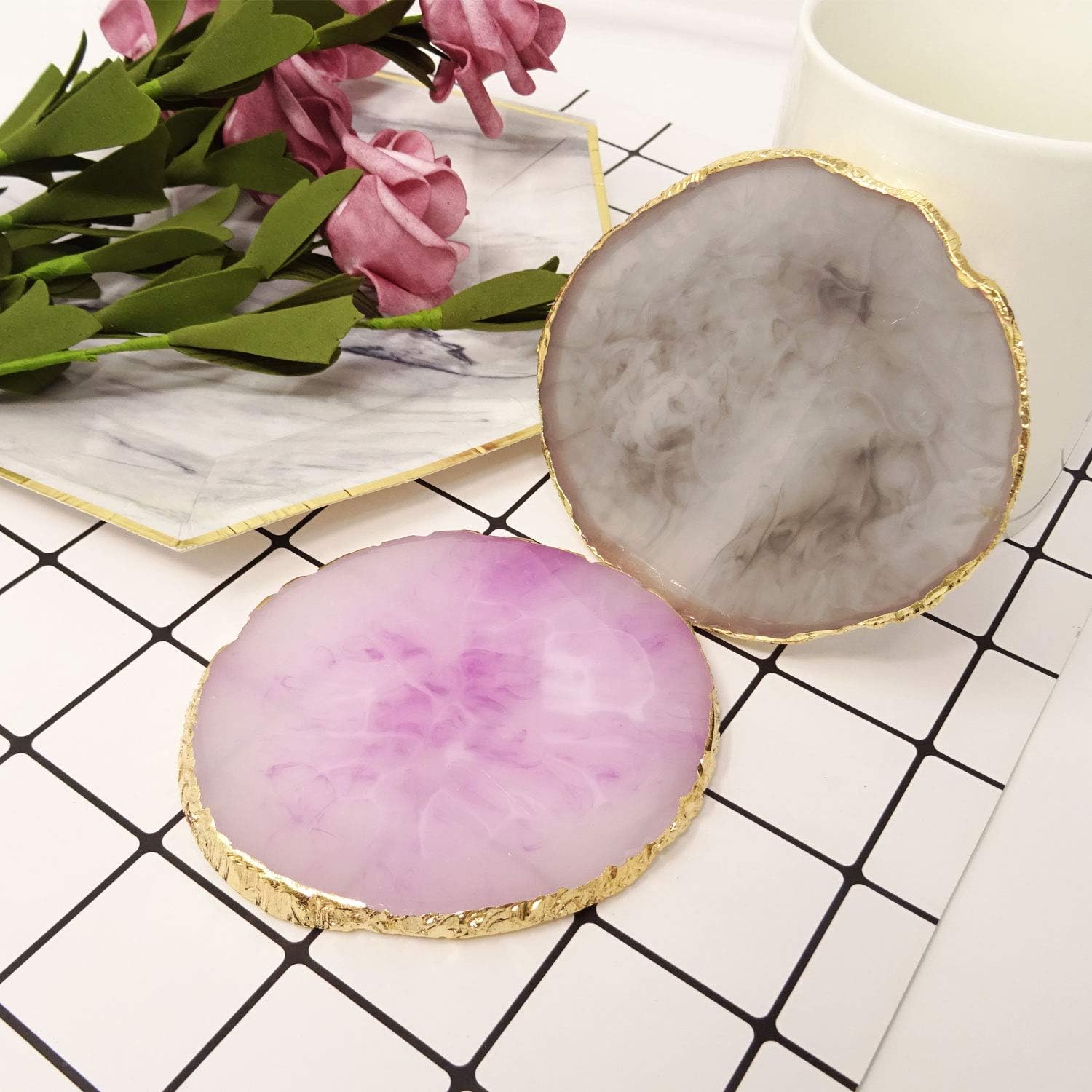 Honbay 2PCS Golden Edge Resin Nail Art Palettes Drawing Plates Manicure Display Tools for Women