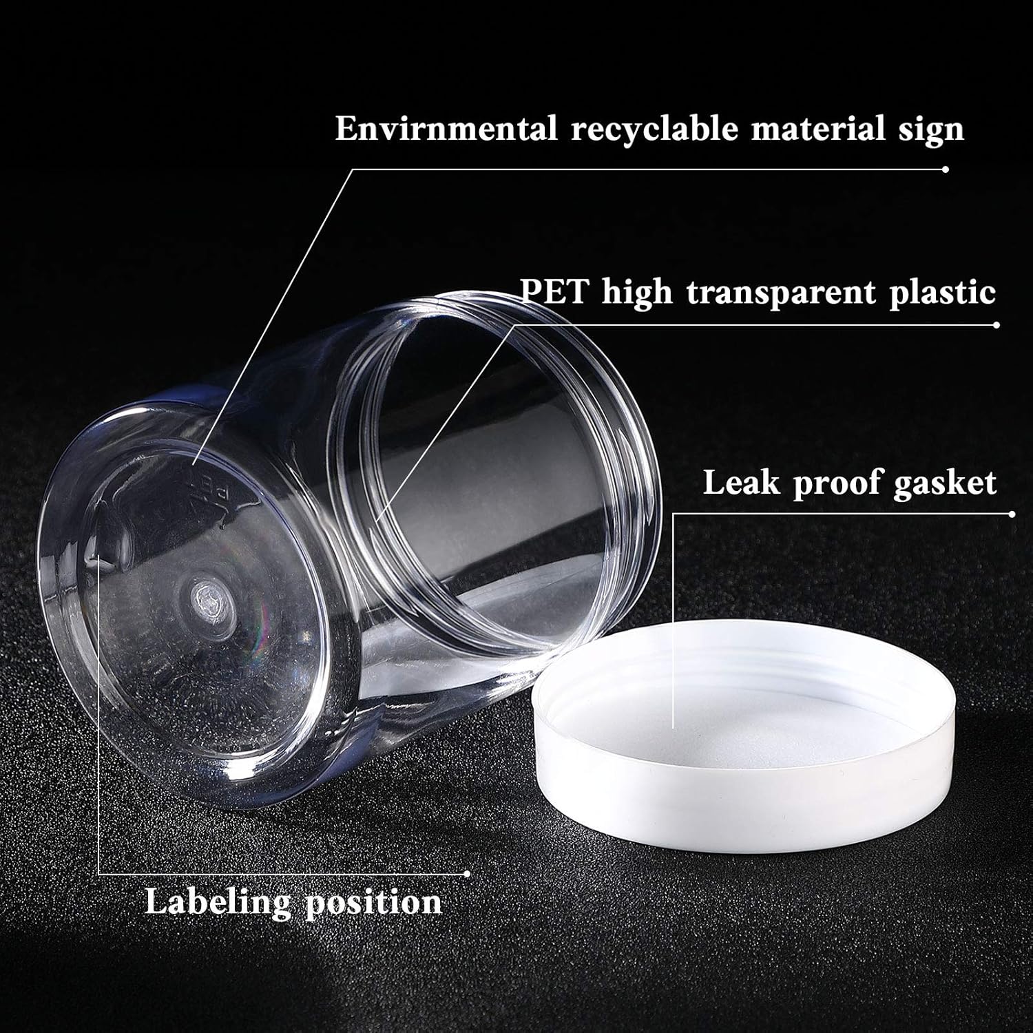 - Quality material: the 2.5 oz plastic jars with lids are made of quality clear plastic, without odd smell, does not contaminate your skincare products, stable, high temperature resistance, a white plastic cover with lid, sealed storage and leak proof