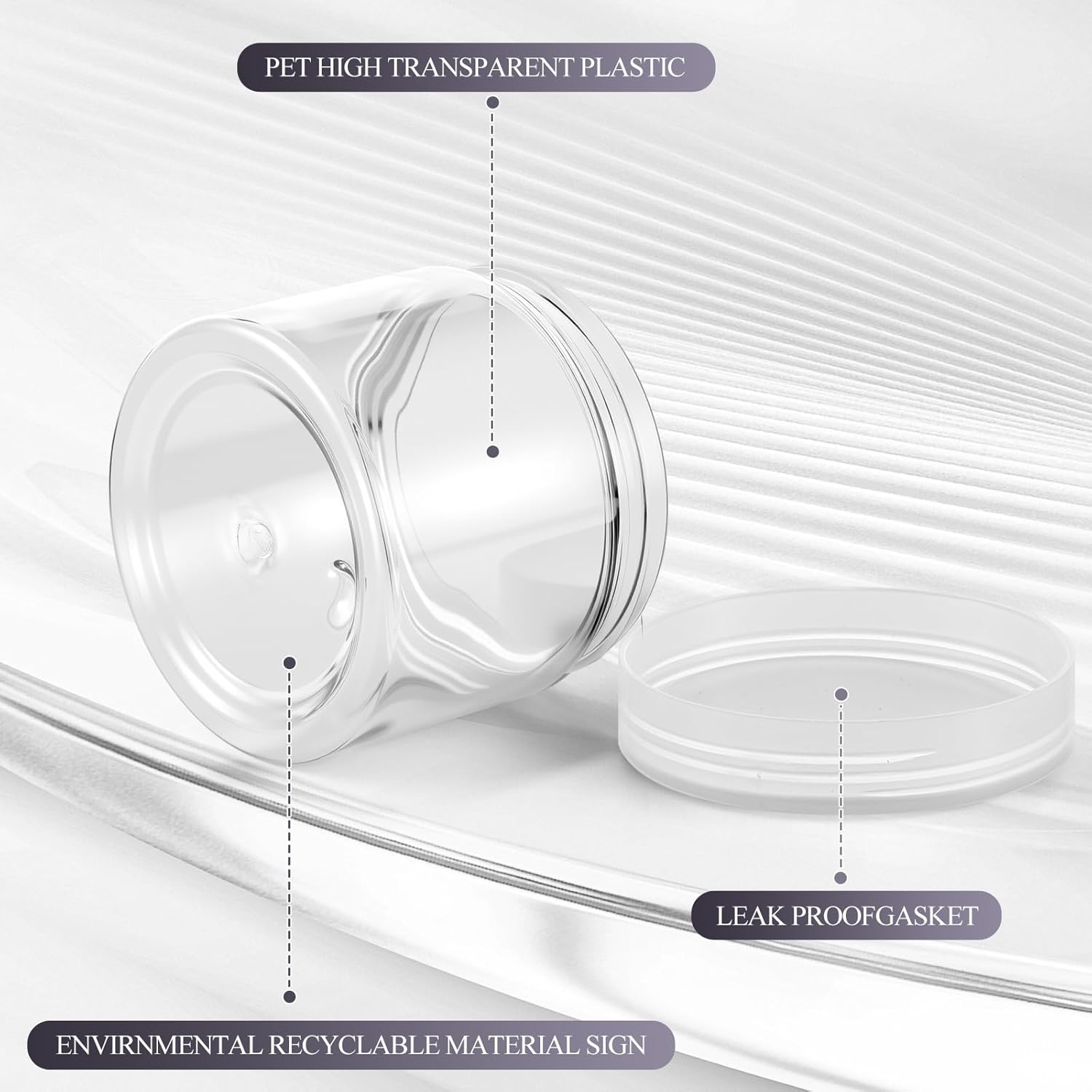 - Quality Material: the plastic jars with lids are made of quality plastic, without odd smell, does not contaminate your skincare products, stable, high temperature resistance, sealed storage and leak proof