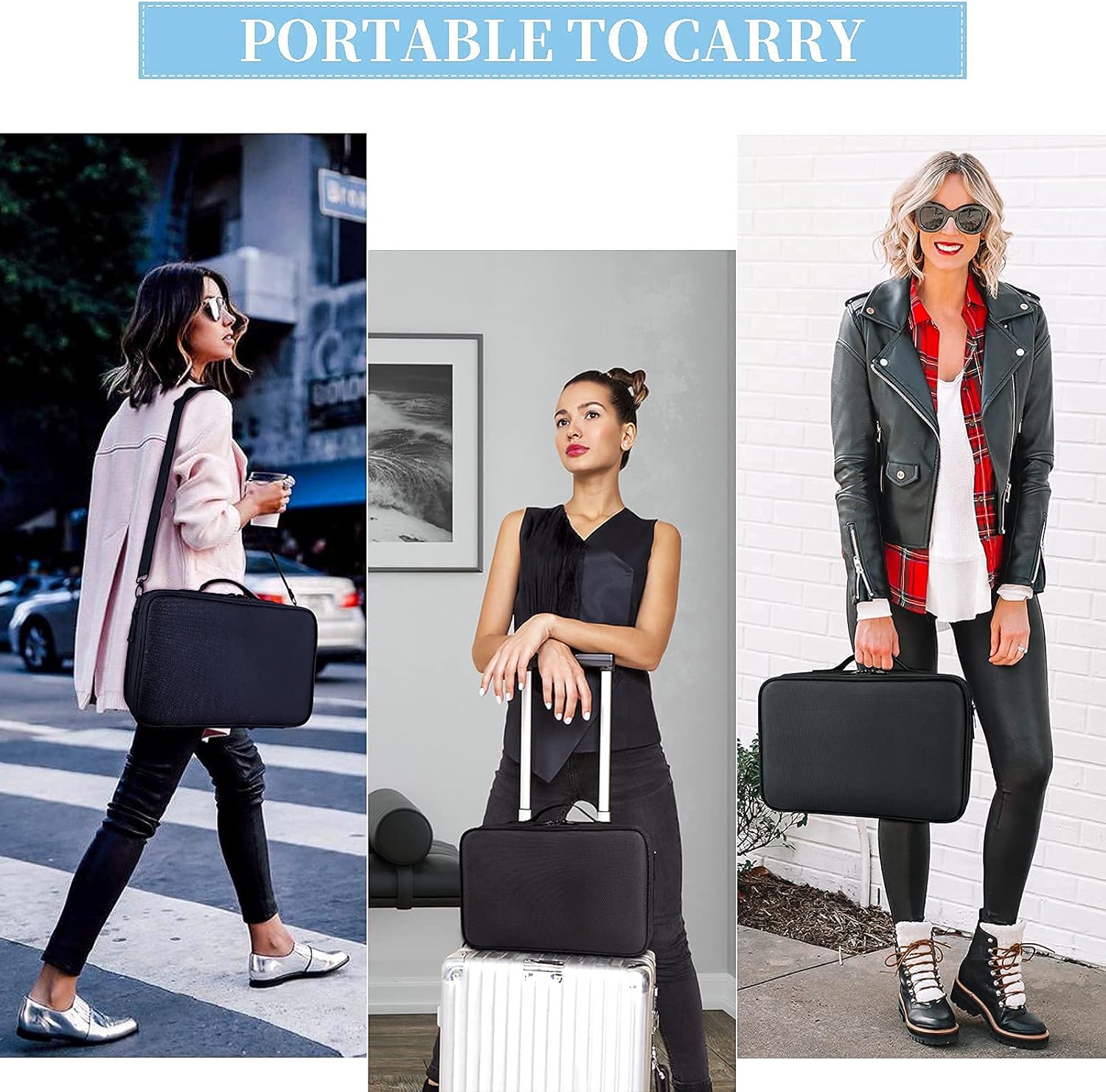 - Multifunctional: This large makeup bag to ensure your cosmetics and tools safety and organization, also for storing jewelry, electronic accessories, digital camera, toiletries, valuable objects, shaving Kit and so on. Definitely an ideal Christmas gift for yourself, your family, and your friend.