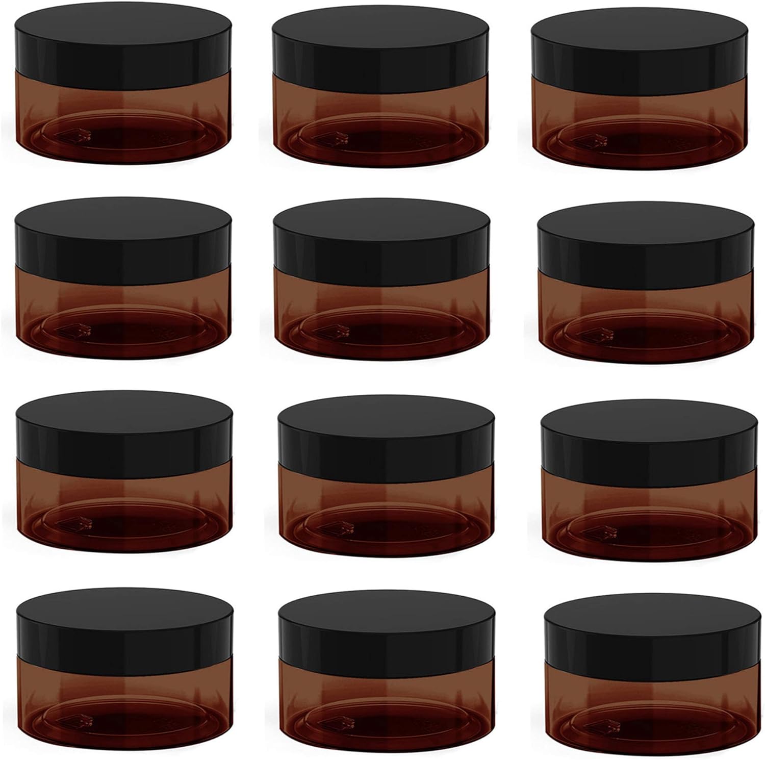 4 oz Amber Plastic Cosmetic Jars Leak Proof Container with Black Lid for Cream, Lotion, Powder, ointment, Beauty Products etc, 12 Pcs.