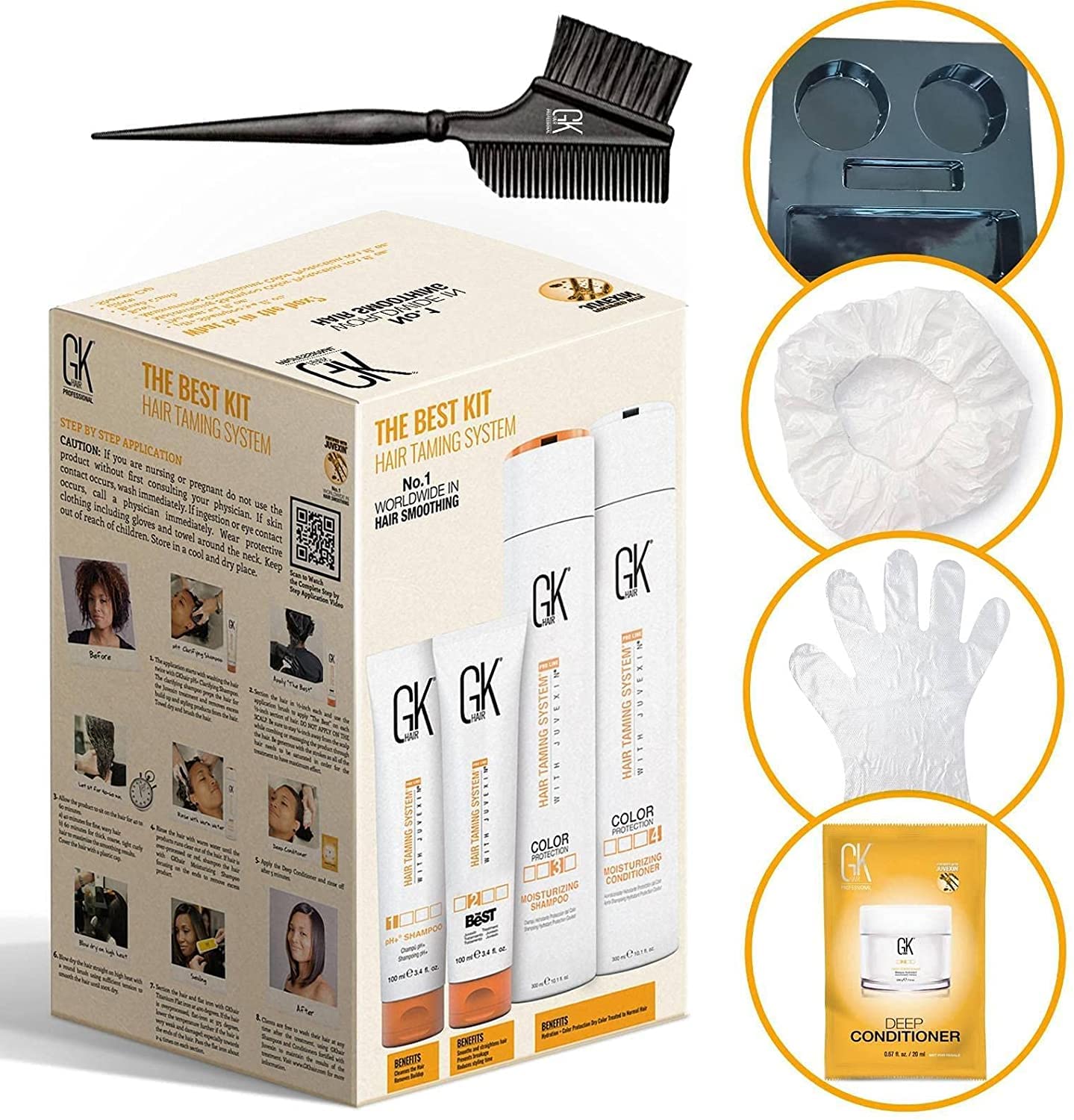 • NO WAITING TIME TO WASH AS NORMAL: There is no wait days after the application to be allowed to wash your hair again. This GK Hair Keratin treatment The Best kit also known as Brazilian keratin treatment comes with 100ml/3.4oz Ph+ Clarifying shampoo, GK Hair The Best Keratin Treatment, GK Hair Moisturizing Shampoo, GK Hair Moisturizing Conditioner and Deep Conditioner 20ml sachet Stop buying Frizz products that work for one day.