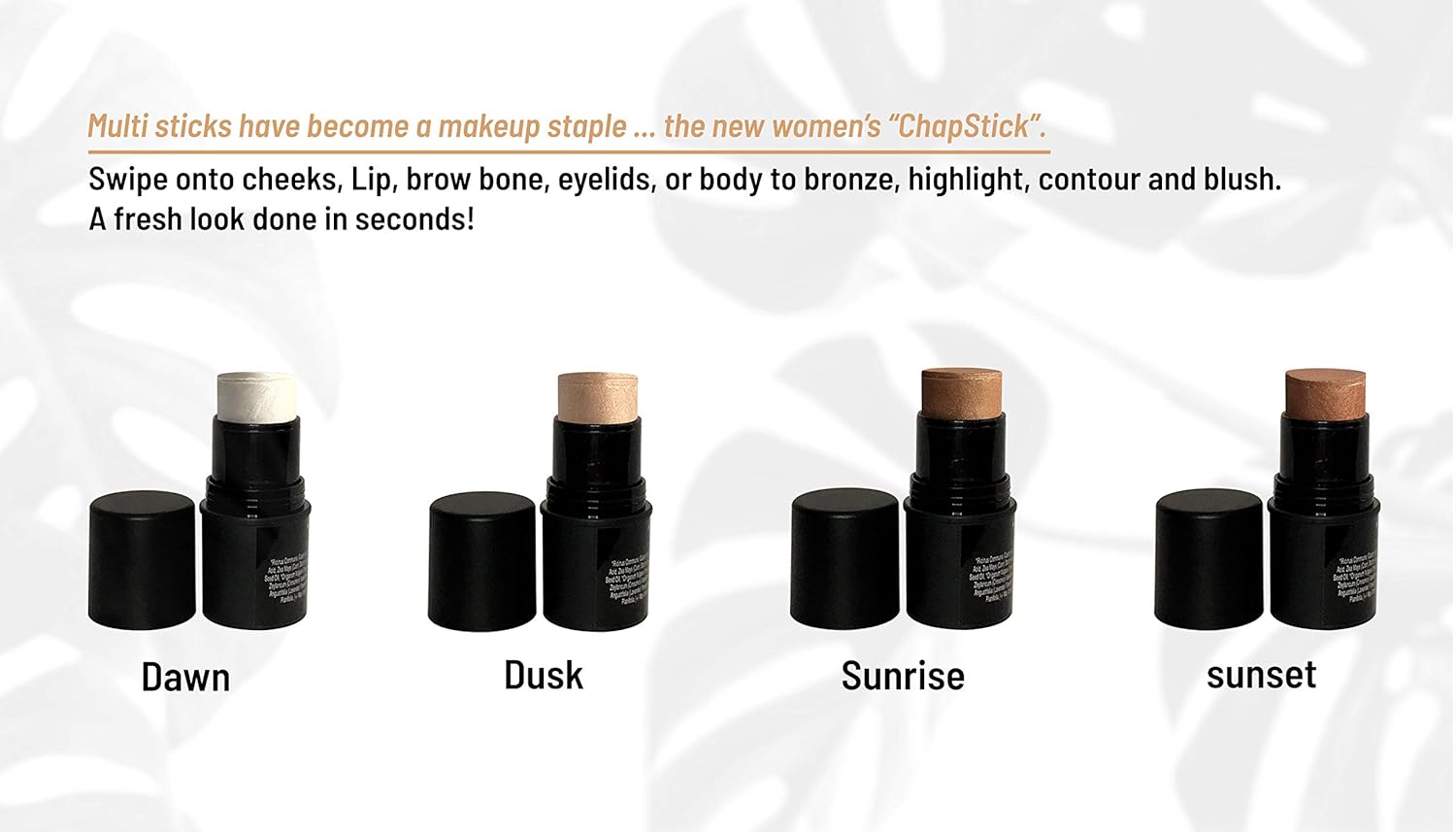 Natural Organic Multi Cream Sticks, Highlighter and Bronzers 100% Natural, Vegan, Gluten Free, Cruelty Free, Made in the USA, 0.18 oz. (Dawn)