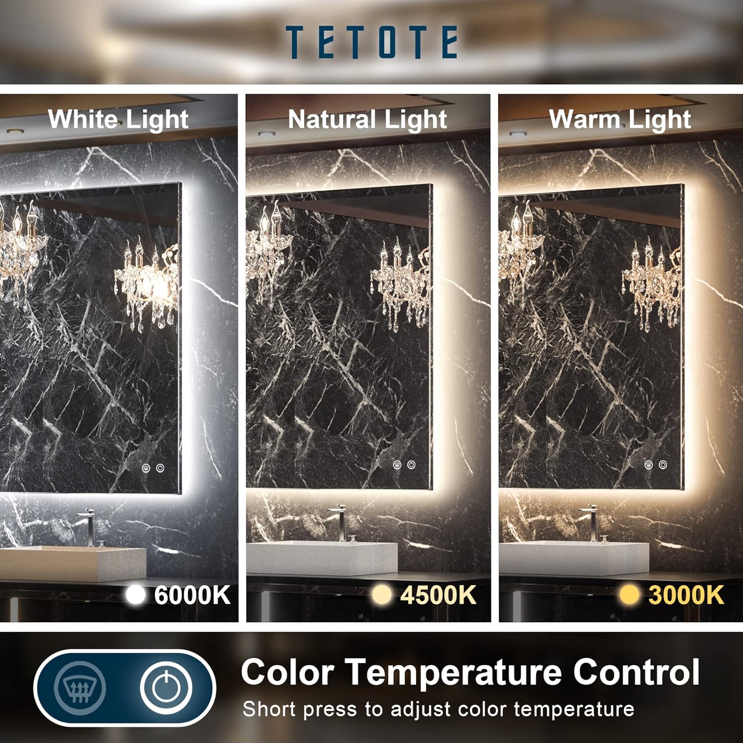 TETOTE 24x32 LED Backlit Mirror Bathroom with Light,3Color White/Warm/Natural,Anti-Fog Lighted Mirror,Dimmable,Vanity Mirror,Wall Mounted