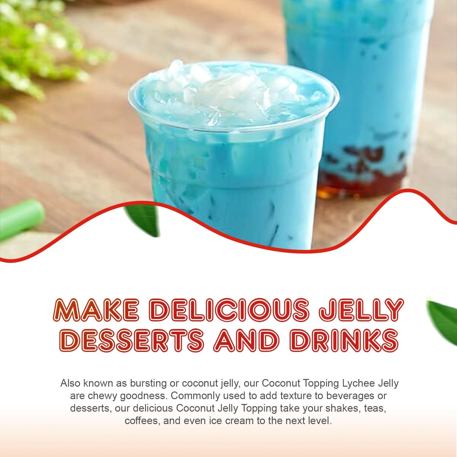 - Unique Texture: This coconut jelly topping has a jelly-like consistency thicker than gelatin, providing a unique and compelling texture for drinks and desserts. The coconut jelly with nata de coco distinct feel enhances the overall sensory experience of the beverages or dishes it's added to