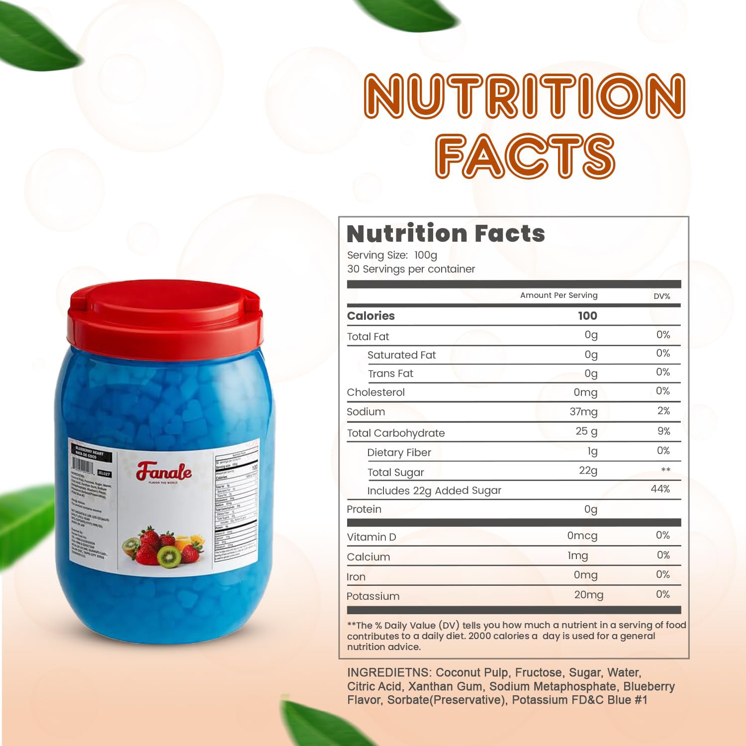 New Fanale Coconut Jelly Topping nata de coco for Boba Tea | Ice Cream | Yogurt | Smoothie | Milk Tea | Desserts (Blueberry Heart Shaped, 6.6 lb)