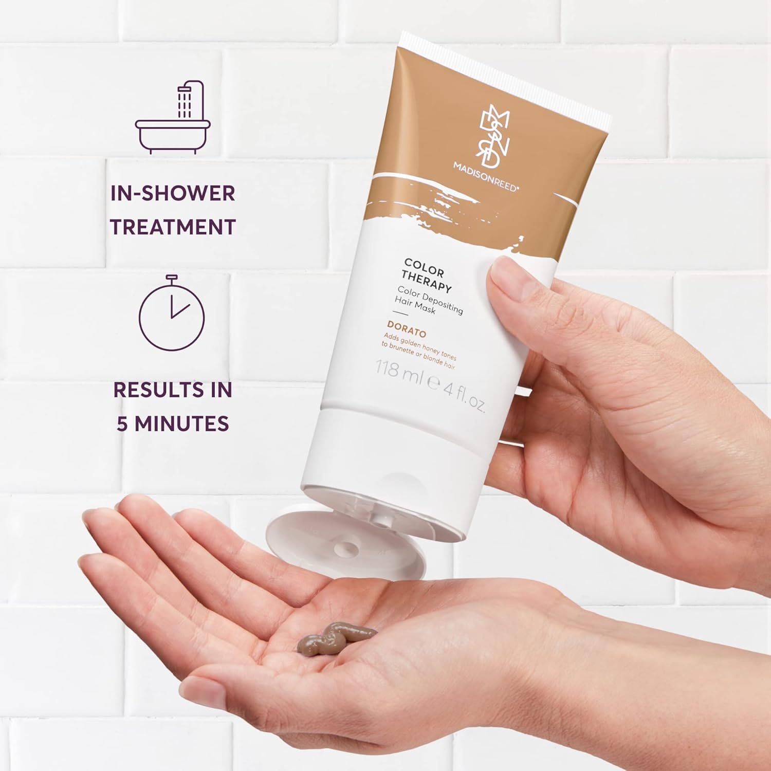• COLOR DEPOSITING HAIR MASK: Madison Reed Color Therapy in Dorato works best on blonde or brunette hair, as well as highlighted hair, and adds golden honey tones to refresh & enhance color. Not intended for gray coverage.