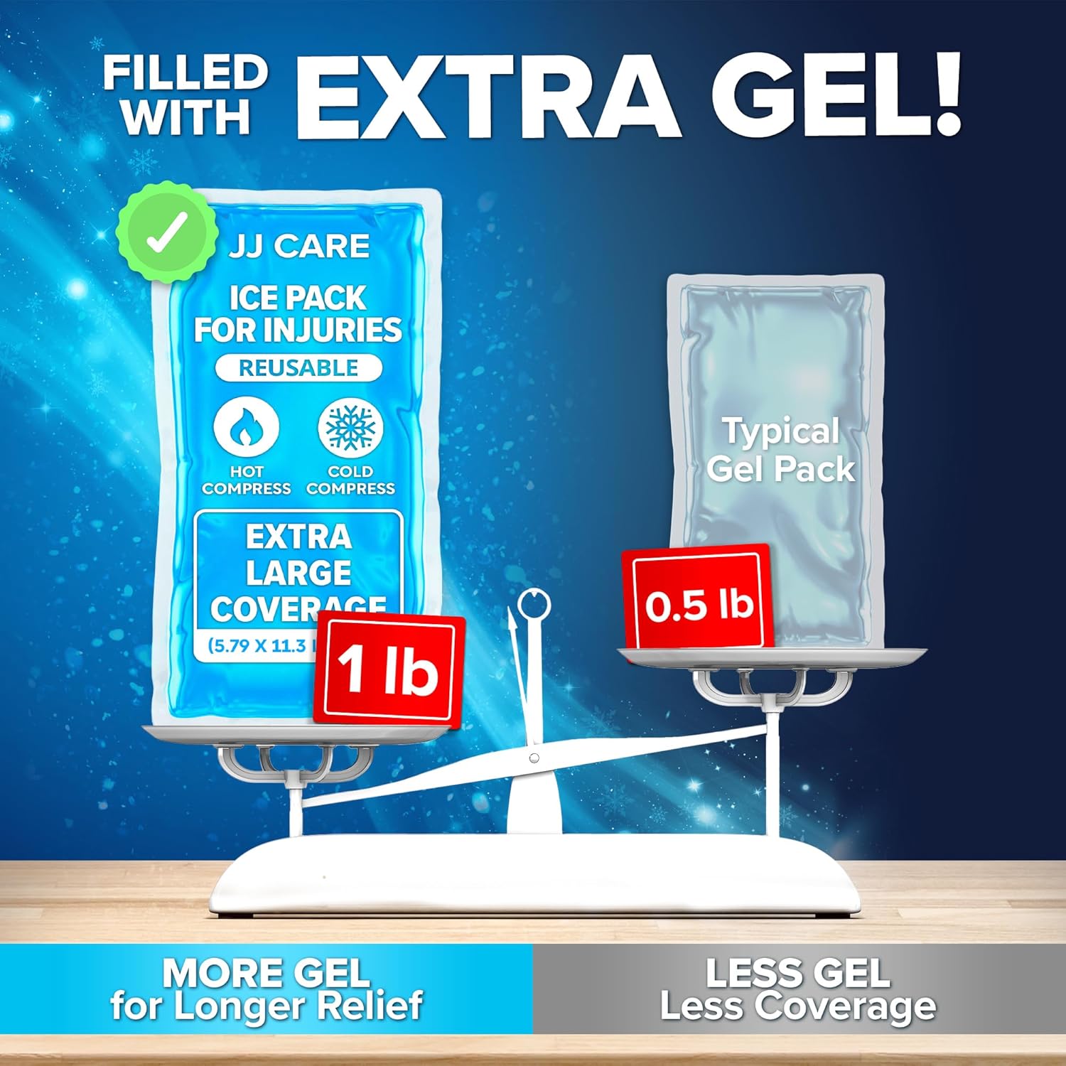 - β Pain & Swelling Relief - JJ CARE reusable cold gel packs reduces soreness. It provides quick pain relief for dizziness, joint problems, post-surgery, injuries, & fever to aid in your faster recovery