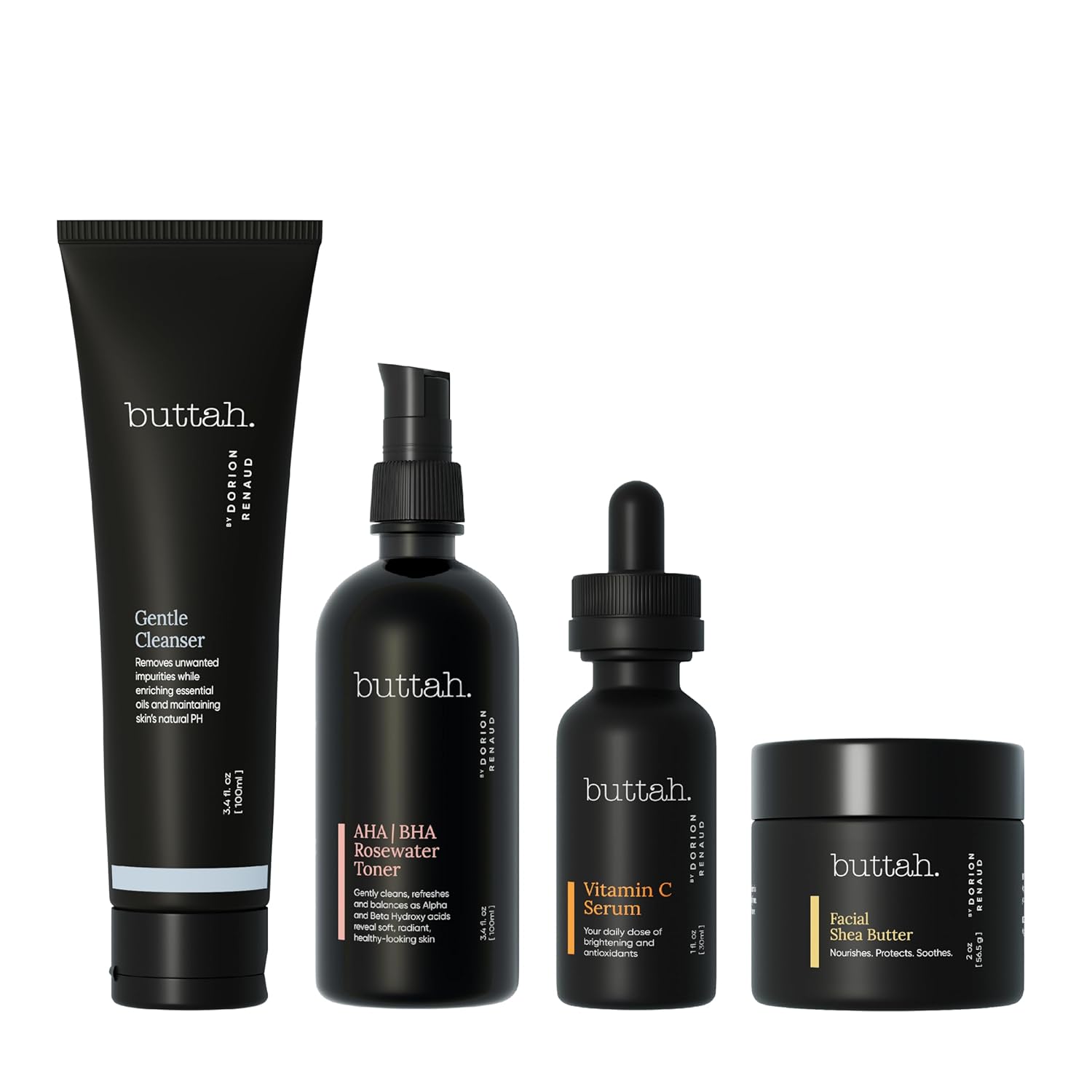 Buttah Skin Supreme Kit for Melanin Rich Skin | Facial Shea Butter 2 oz | Vitamin C Serum 1 oz | Cleanser 3.4 oz | Rosewater Toner 3.4 oz | Black Owned Skincare