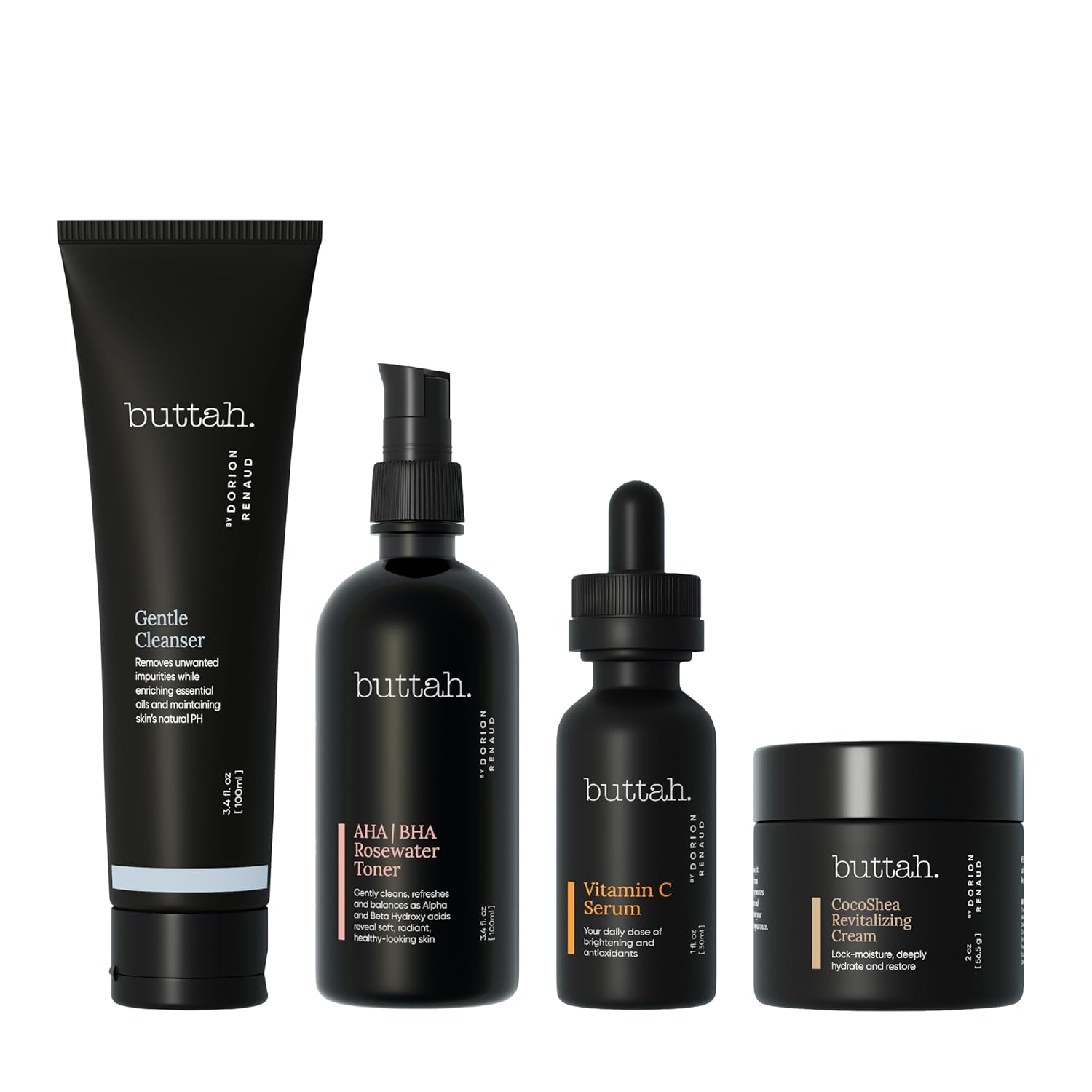 Buttah Skin Supreme Kit for Melanin Rich Skin | CocoShea Revitalizing Cream 2 oz | Vitamin C Serum 1 oz | Cleanser 3.4 oz | Rosewater Toner 3.4 oz | Black Owned Skincare
