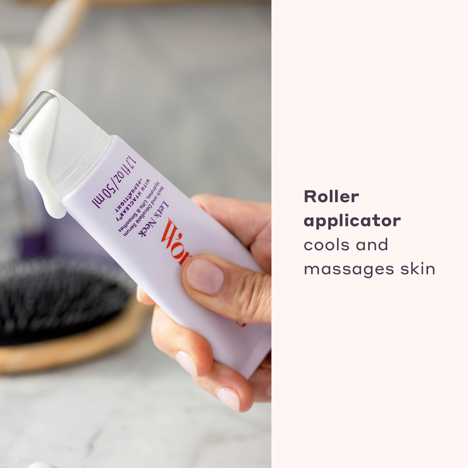Womaness Let's Neck Firming Serum - Hydrates, Lifts, and Smoothes with Cooling & Massaging Roller Applicator - Cream for Women to Smooth Wrinkles & Tightening Sagging Skin - 50ml Roller