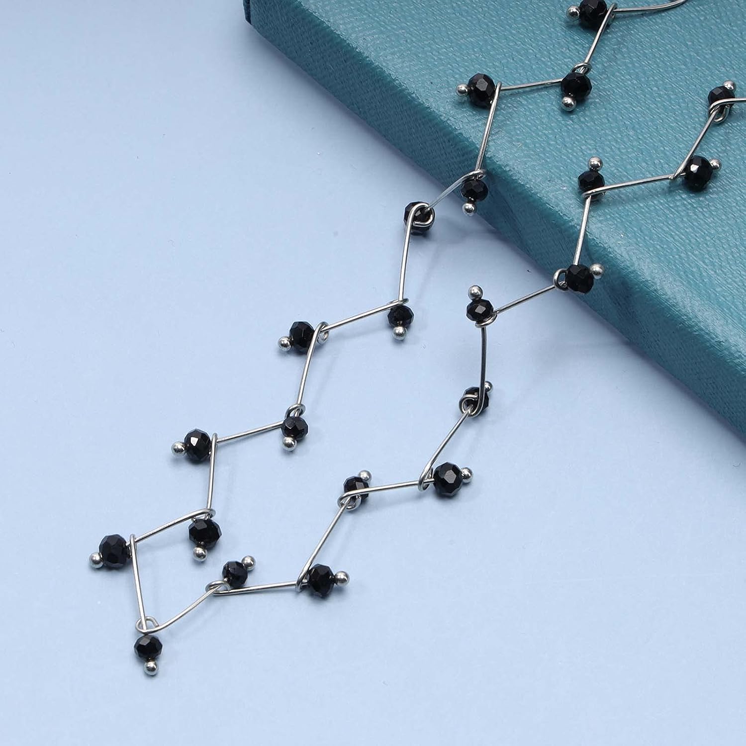 Black Crystal Choker Necklace Short Black Beaded Choker Necklace Silver Chain Necklace Minimalist Necklace Jewelry for Women and Girls