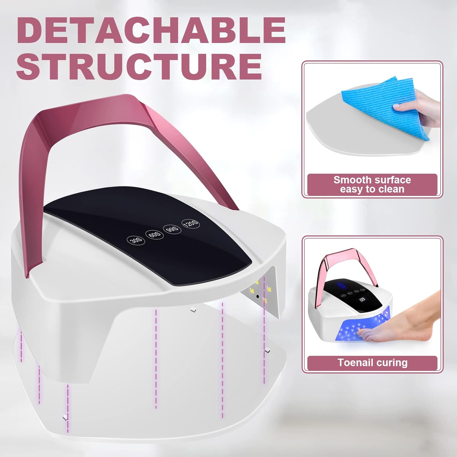 - Removable & Auality Assurance:The detachable base is easy to clean and keep sanitary.This led nail lamp uses premium quality materials.