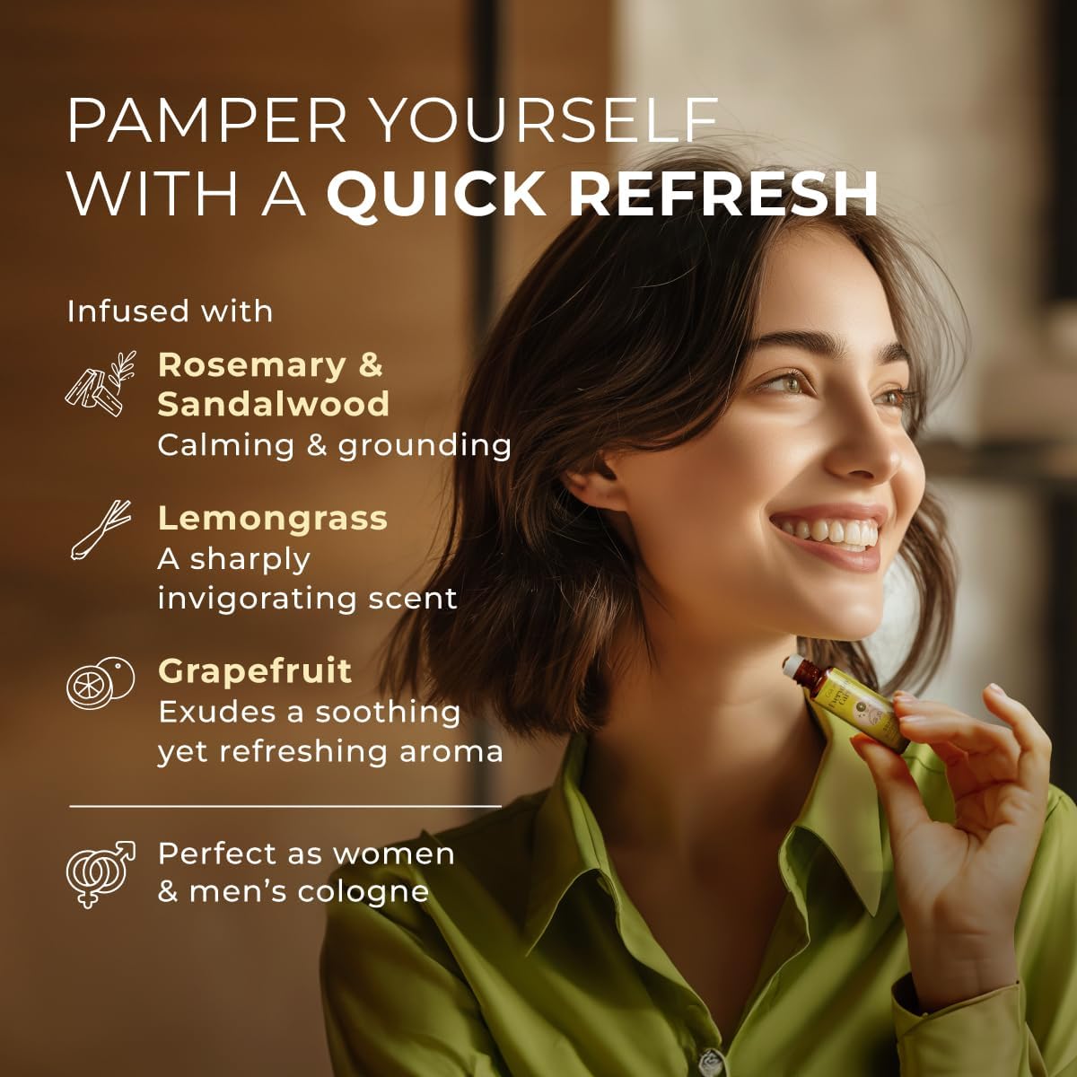 Gya Labs Brain Booster Essential Oil Roll on - Refreshing Brain Essential Oils Roller, 100% Pure Natural, Blend with Rosemary, Sandalwood, Lemongrass & Grapefruit, Travel Size (0.34 Fl Oz)