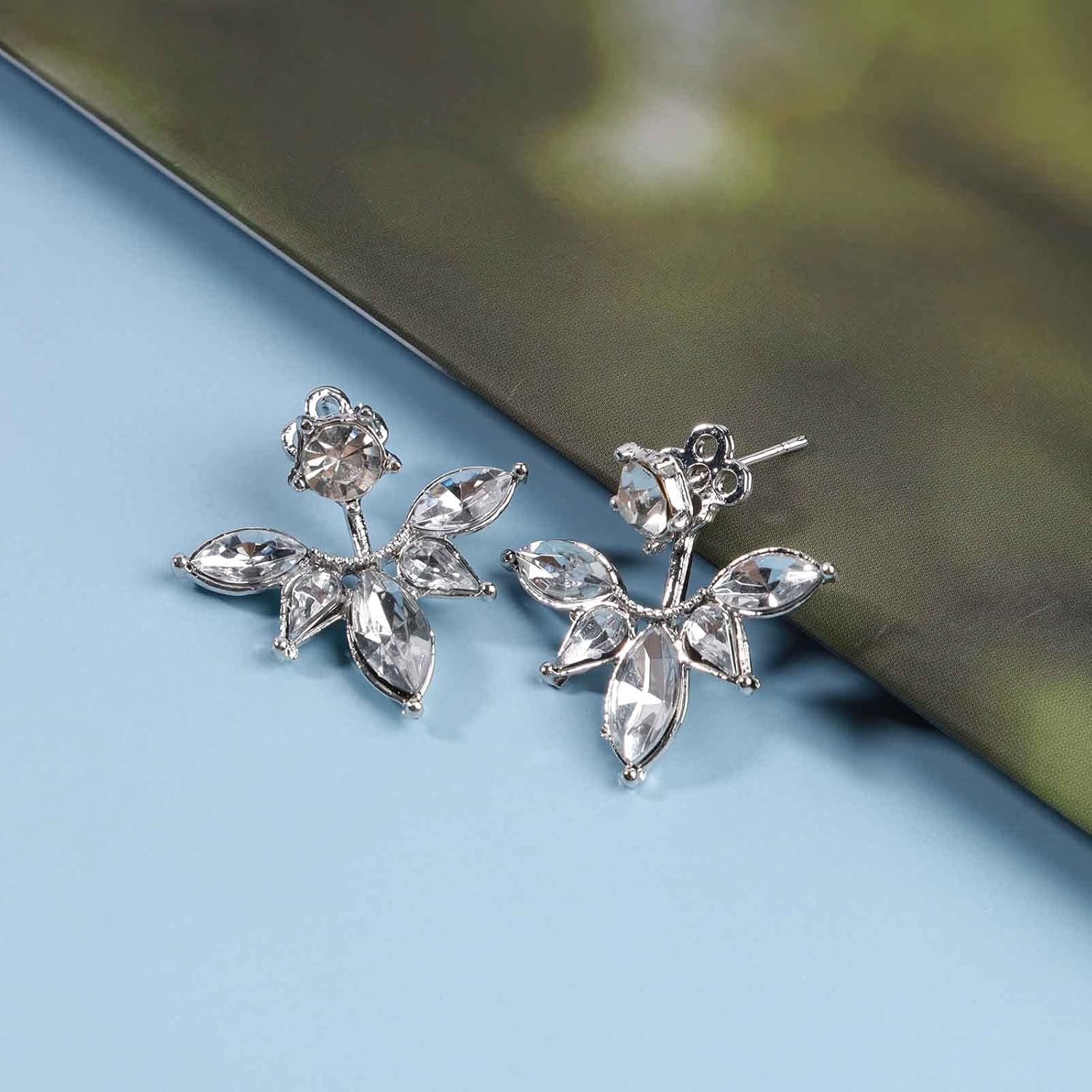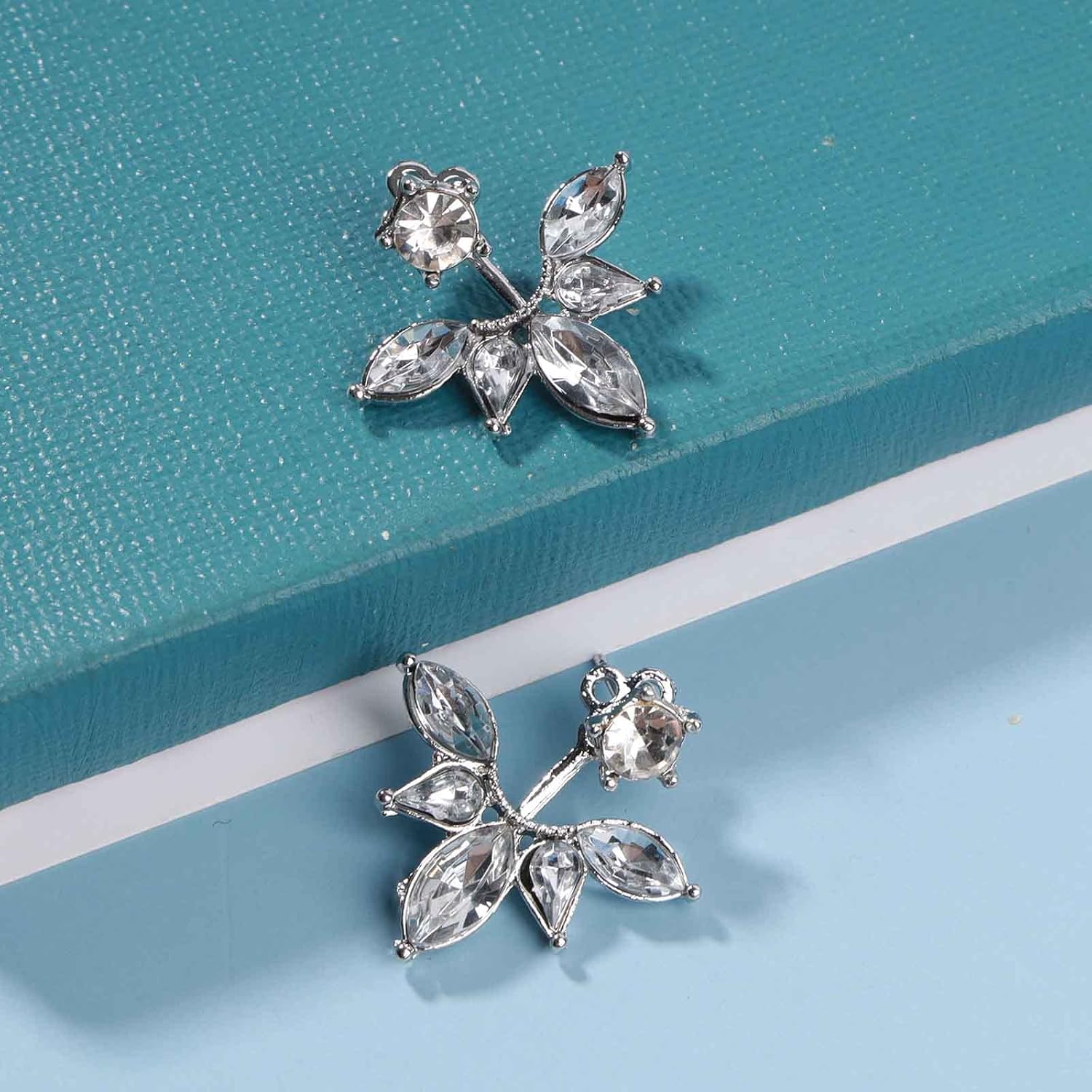 - Silver rhinestone ear jacket earrings with real images.2Pcs.