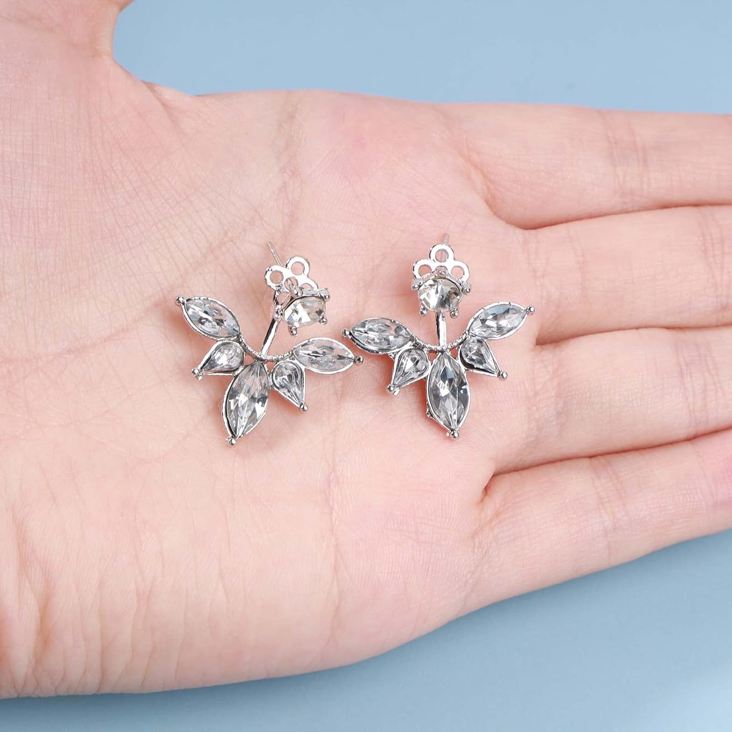 - Lotus Flower Ear Jackets Earrings made of high quality alloy and crystal,lightweight and comfortable to wear.