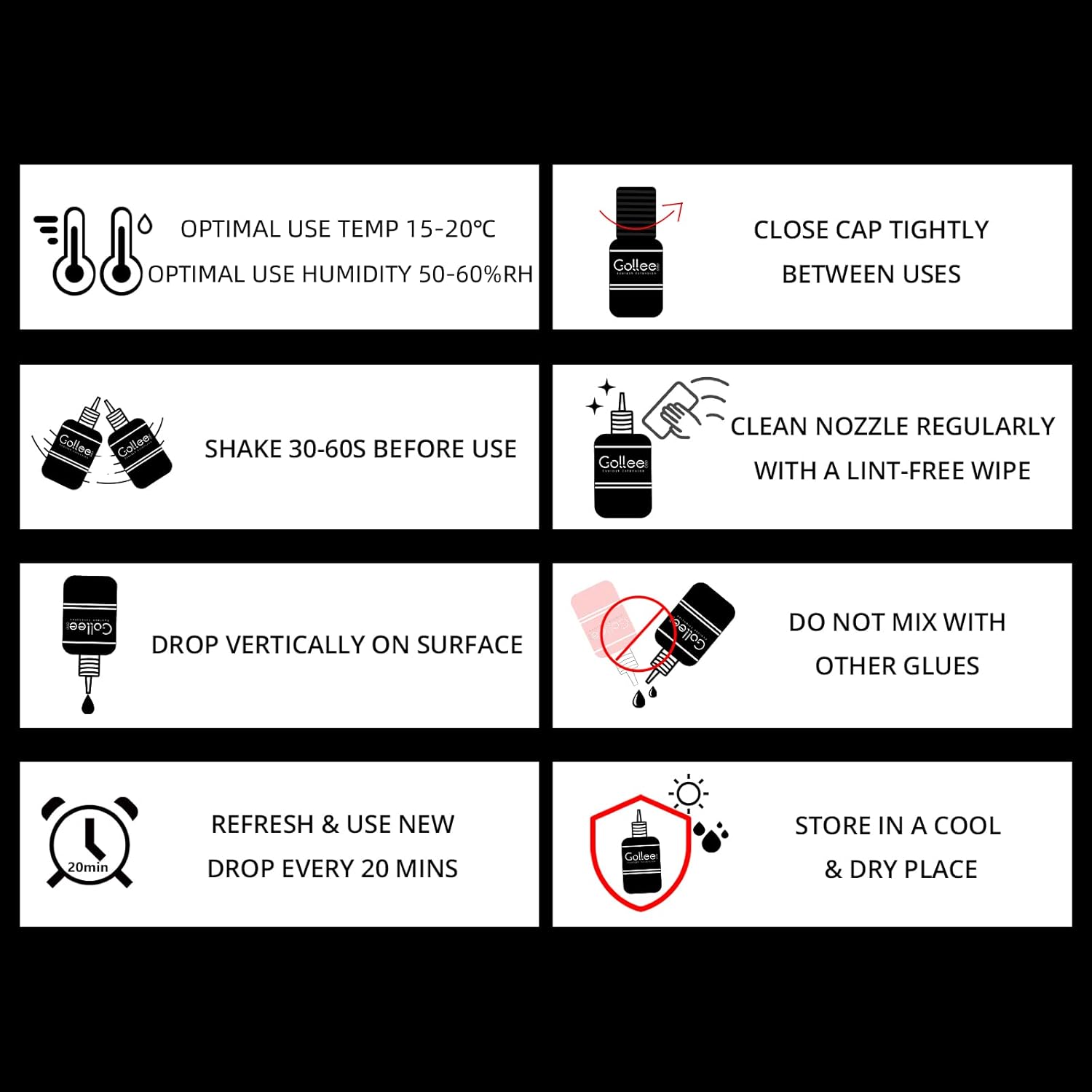 - ✅ Low Stimulus and Long Lasting - This eyelash extension glue is low odor, low stimulus and long lasting. All Golleepro eyelash extension waterproof glues and lash removers are medical grade and carefully tested to ensure the highest quality and safety standards available for eyelash extension application and removal. Offering superior bonding performance, our eyelash extension glues are prepared to take on any occasion or activity. Choose the best eyelash extension glue here