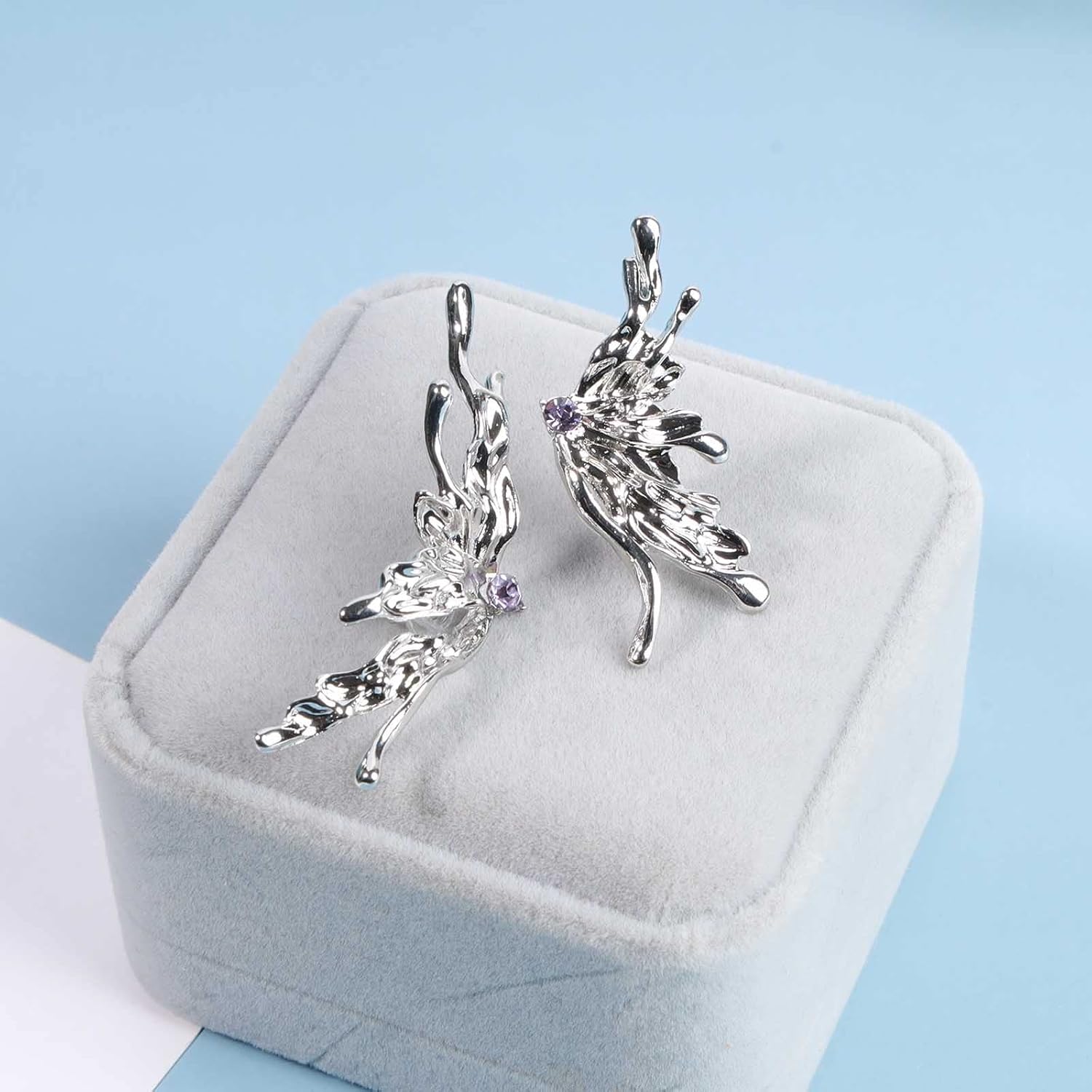 Punk Butterfly Wing Earrings Rhinestone Wing Studs Earrings Silver Half Wing Earrings Cool Mismatch Animal Earrings Jewelry for Women and Girls