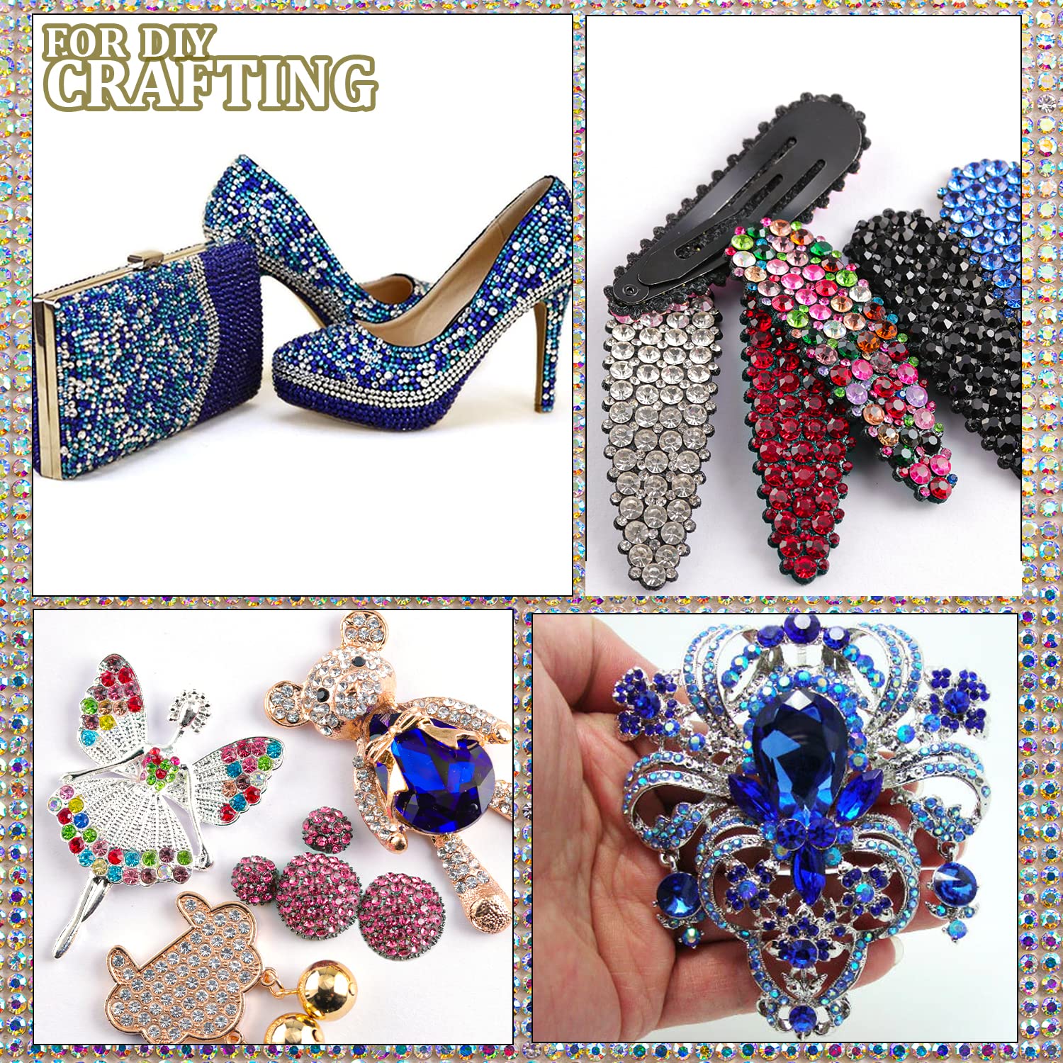 - ❤WIDE APPLICATION --The Crystal Iridescent Gems Nail Rhinestones Are Perfect for Creating 3D Nail Art or Decorating Jewelry, Makeup, Body Art, DIY Crafts, Wedding Dress or Shoes, Cell Phone Cases, Glasses, Greeting Cards, Bags, Guitars, Scrapbooks etc.