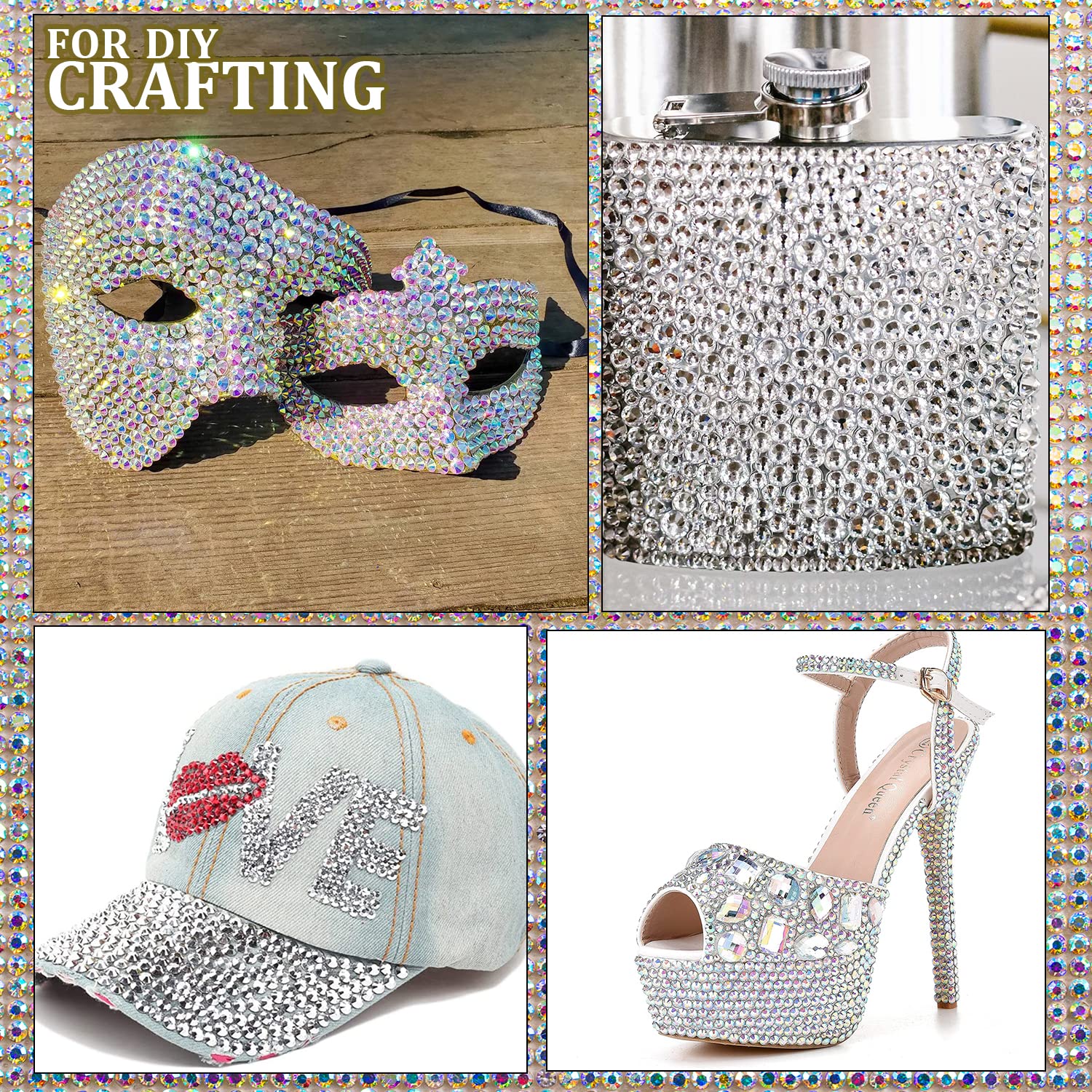 - ❤WIDE APPLICATION --The Crystal Iridescent Gems Nail Rhinestones Are Perfect for Creating 3D Nail Art or Decorating Jewelry, Makeup, Body Art, DIY Crafts, Wedding Dress or Shoes, Cell Phone Cases, Glasses, Greeting Cards, Bags, Guitars, Scrapbooks etc.