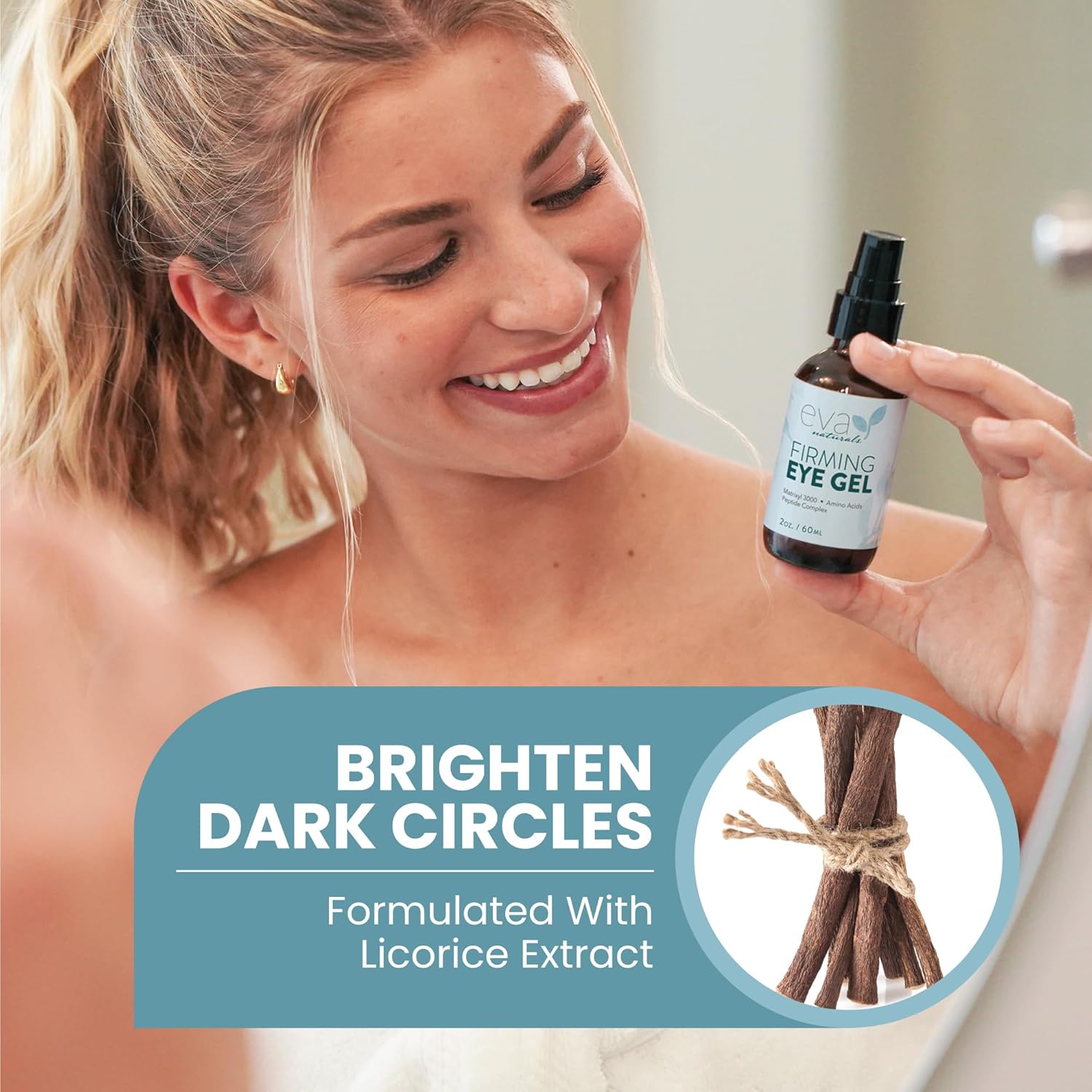 Eva Naturals Anti-Aging Eye Gel - Luxurious Hydrating Under Eye Cream For Dark Circles and Puffiness, Bags, Crows Feet, Wrinkles - With Hyaluronic Acid & Skin-Firming Peptides Eye Serum 2 oz (2 Pack)