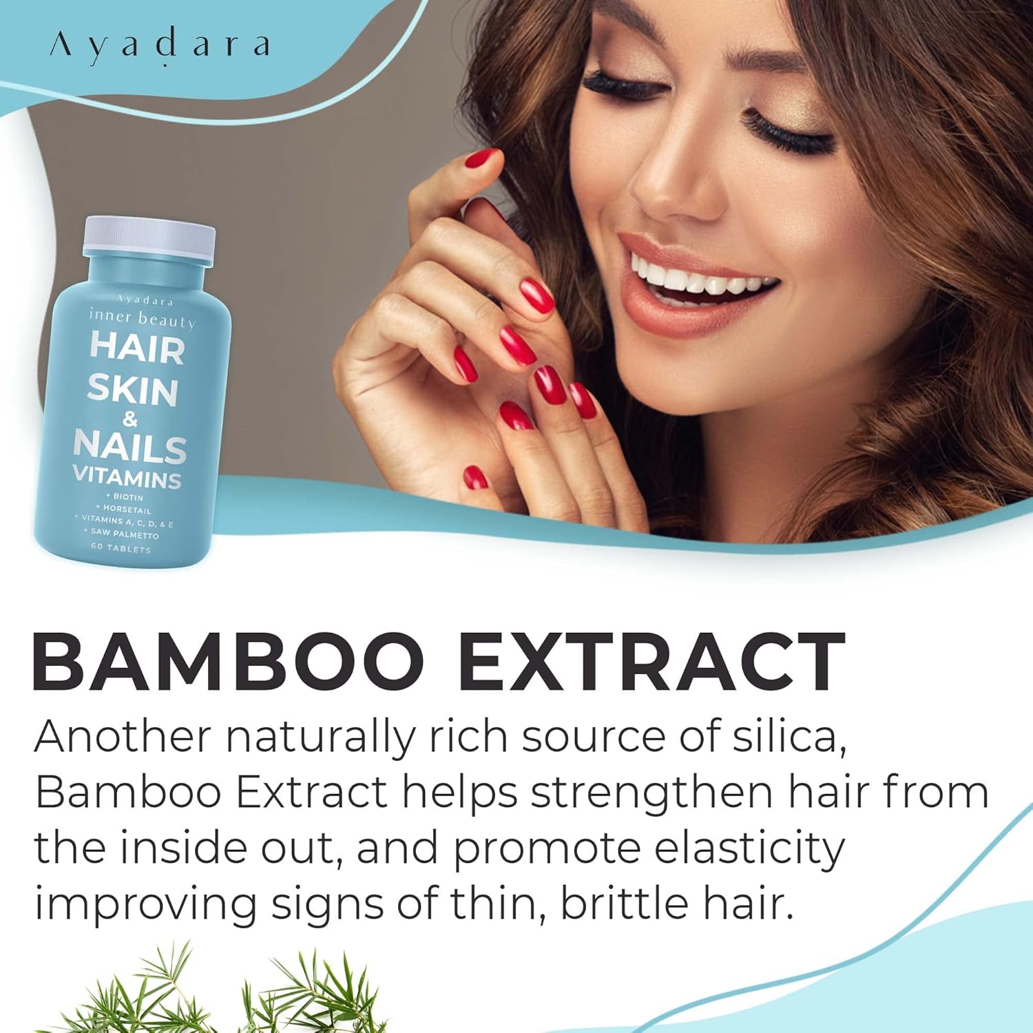 - Comprehensive Beauty Support: Elevate your beauty routine with Ayadara Hair, Skin, and Nails Vitamins, a holistic formula that promotes lusher, stronger hair, radiant skin, and healthier nails from within.