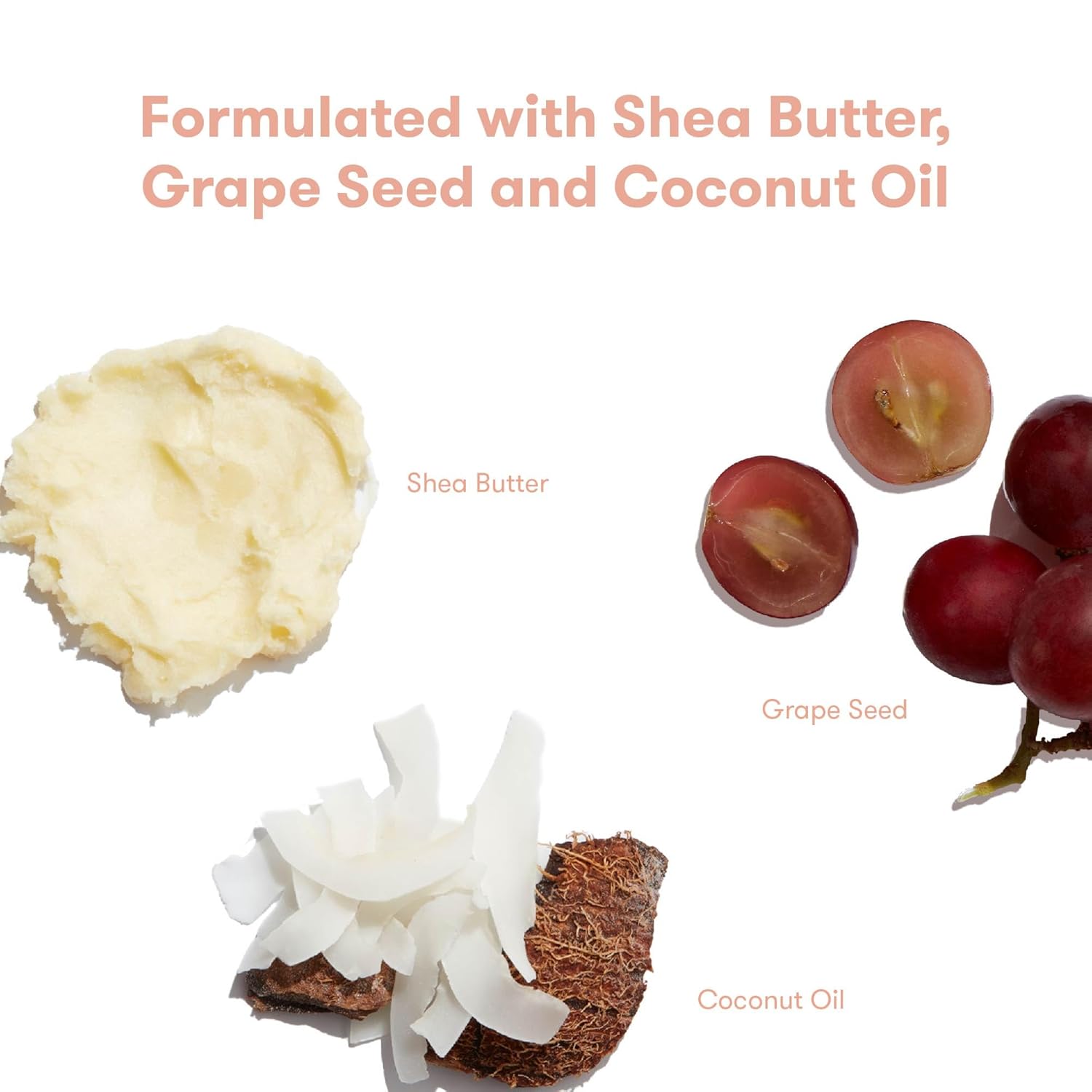 - COCOCNUT OIL, SHEA BUTTER + GRAPESEED: Gentle emollients that keep moisture on lock and strengthen the skinโs natural barrier