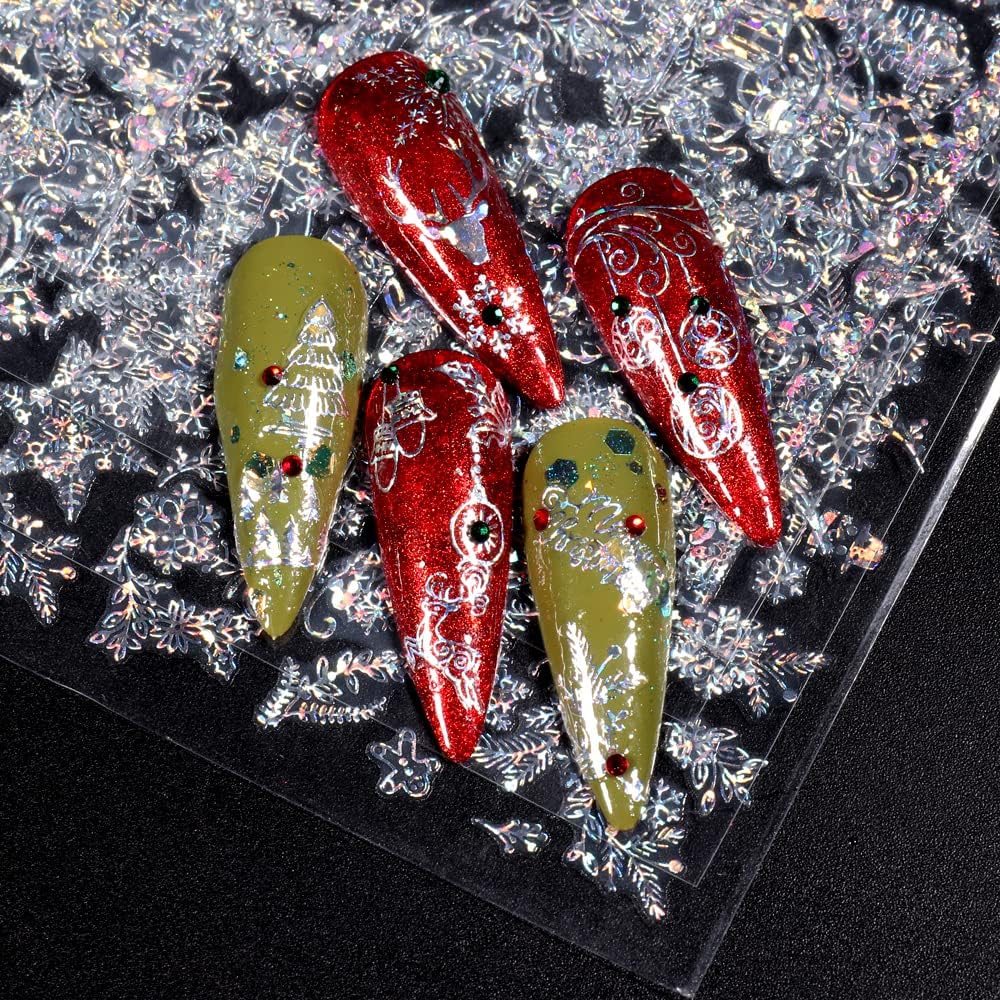 9 Sheets Merry Christmas Nail Art Stickers Decals Self-Adhesive Holiday Snowflakes Laser Silver Snowman Bell Nail Supplies Nail Art Design Decoration Accessories