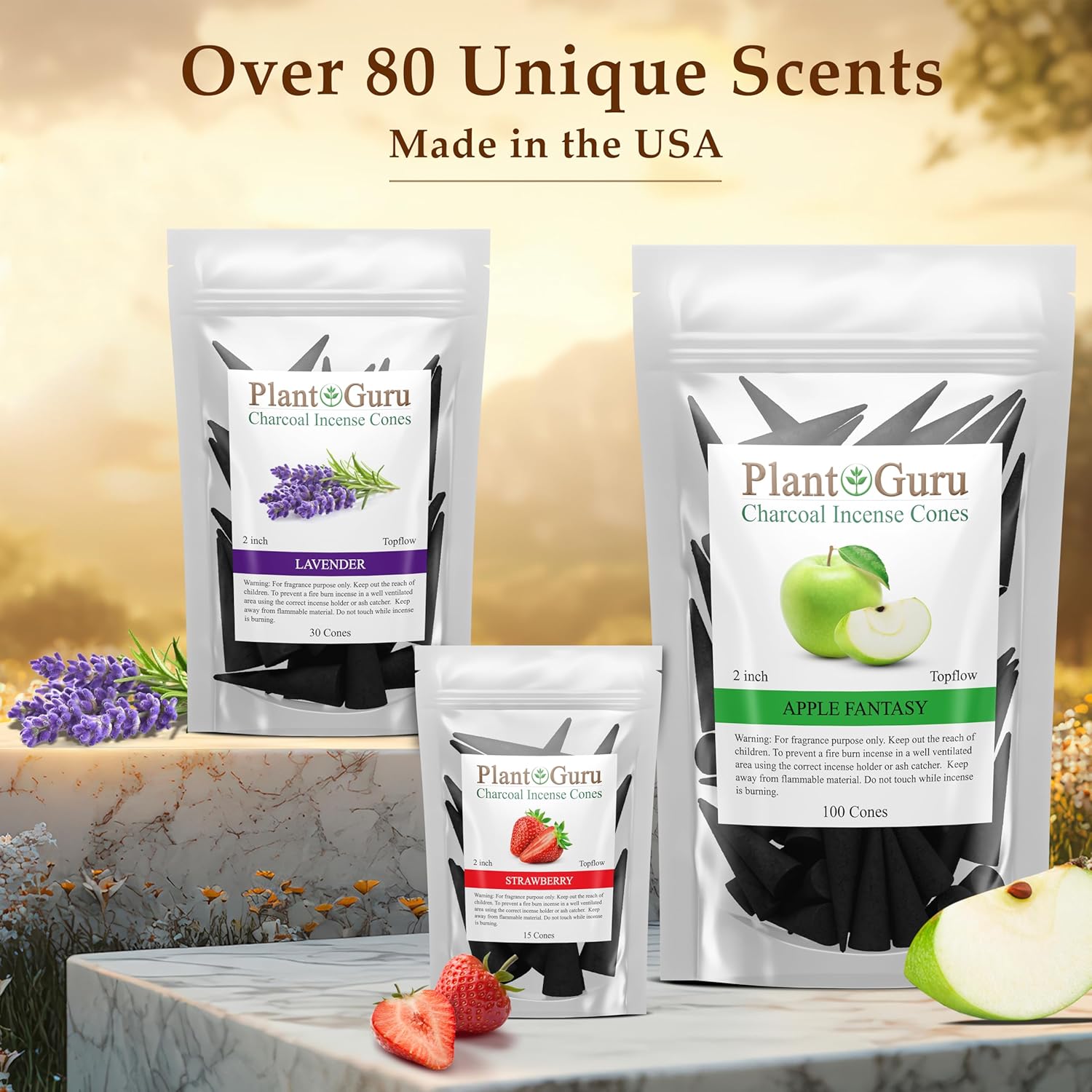- β MADE IN THE USA - 60 Cones Per Pack - Hand dipped daily using premium grade fragrance Oils. Each cone is 2'' inches long and made of high-quality charcoal. Hand dipped for 48 hours. Burns time is approximately 25 to 30 minutes.
